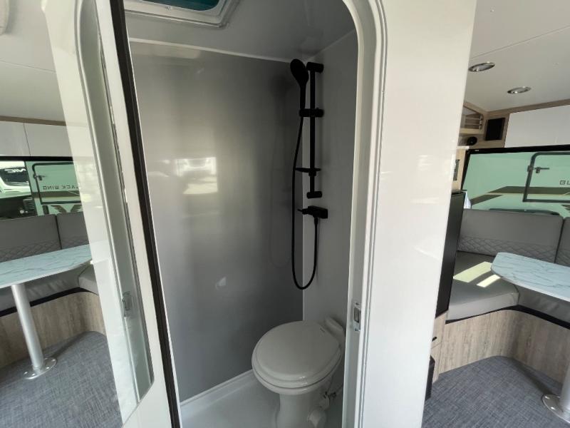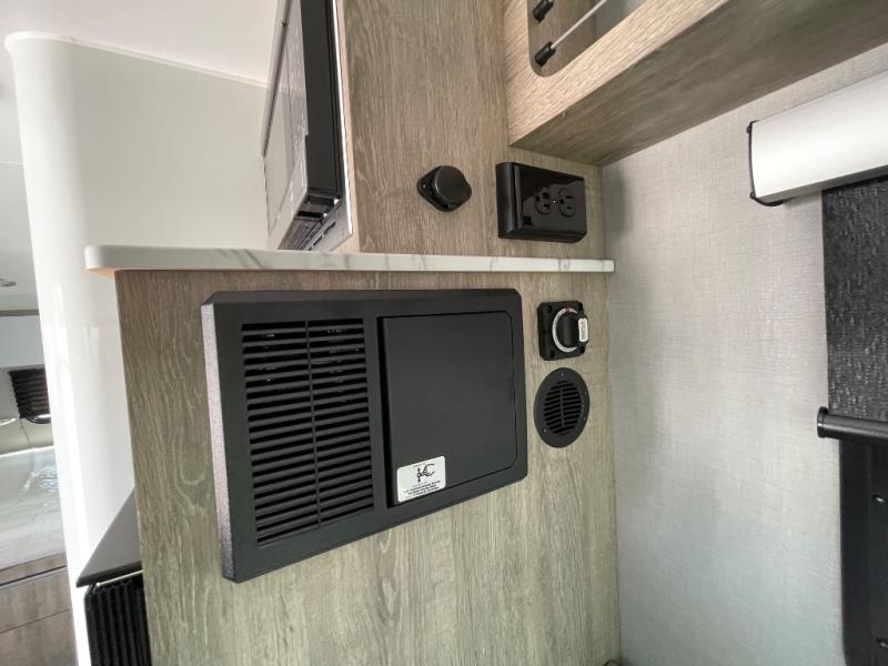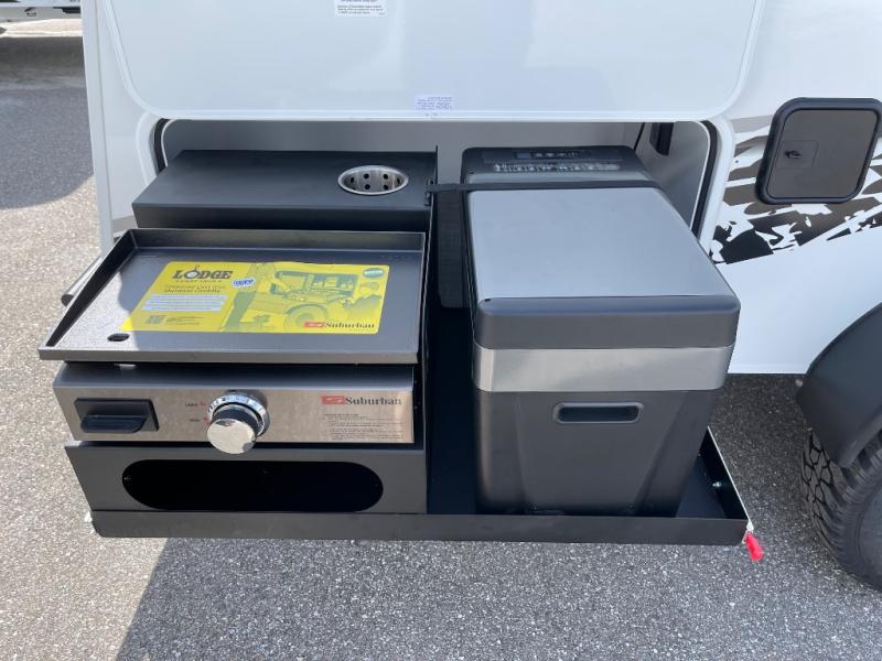 You will love the added space in this travel trailer that can sleep four people each night. There is a queen-size bed in the back, plus a convertible U-shaped dinette up front for the kids or your camping friends. The kitchen includes a two burner stainless steel cooktop, a stainless steel microwave, and a 4.5 12V compressor refrigerator for your perishables. You can also add the optional 10' power awning outside for shade as you visit with loved ones! This model has a dry weight that ranges from 3,230-3,372 lbs., a tongue weight between 465-495 lbs., and a carrying capacity between 525-610 lbs.