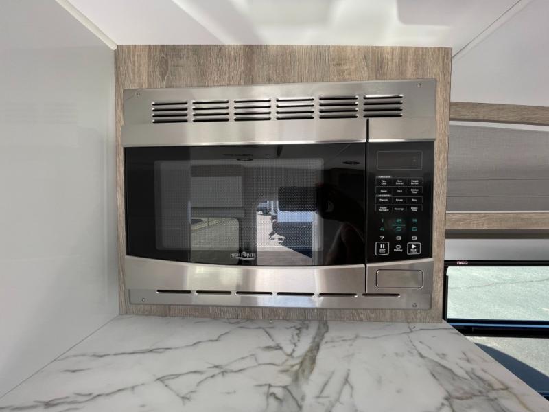 You will love the added space in this travel trailer that can sleep four people each night. There is a queen-size bed in the back, plus a convertible U-shaped dinette up front for the kids or your camping friends. The kitchen includes a two burner stainless steel cooktop, a stainless steel microwave, and a 4.5 12V compressor refrigerator for your perishables. You can also add the optional 10' power awning outside for shade as you visit with loved ones! This model has a dry weight that ranges from 3,230-3,372 lbs., a tongue weight between 465-495 lbs., and a carrying capacity between 525-610 lbs.