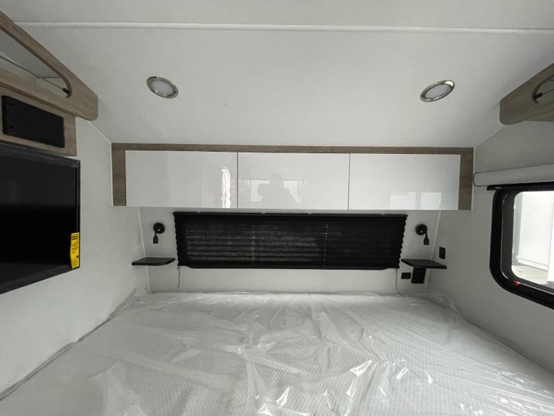 You will love the added space in this travel trailer that can sleep four people each night. There is a queen-size bed in the back, plus a convertible U-shaped dinette up front for the kids or your camping friends. The kitchen includes a two burner stainless steel cooktop, a stainless steel microwave, and a 4.5 12V compressor refrigerator for your perishables. You can also add the optional 10' power awning outside for shade as you visit with loved ones! This model has a dry weight that ranges from 3,230-3,372 lbs., a tongue weight between 465-495 lbs., and a carrying capacity between 525-610 lbs.