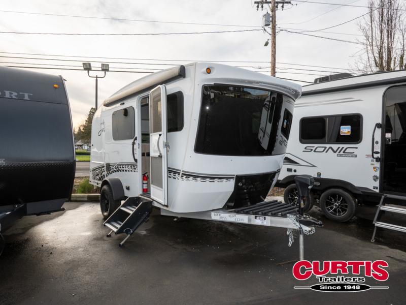 With any Sol travel trailer by inTech RV you will find strong, durable construction consisting of lightweight aluminum that is easier to tow and resists rust, water, and dents. The Tilt-Forward Design creates more space inside so you can stretch out, and the panoramic windshield gives a great view of the mountains, ocean, or forest! The elegant interior features tinted windows with shades, Infinity woven flooring, and a stainless steel cooktop and microwave. You will stay comfortable year around since these models include a 15K BTU A/C and a 16K BTU furnace. The optional Rover Package can also be added that features rugged decals, off-road tires with a 3" lift, two different color choices to choose from, plus more!