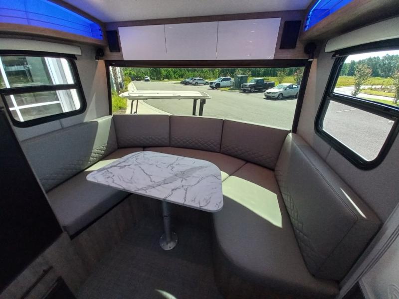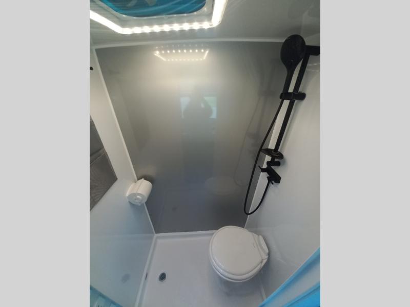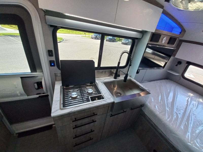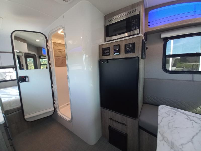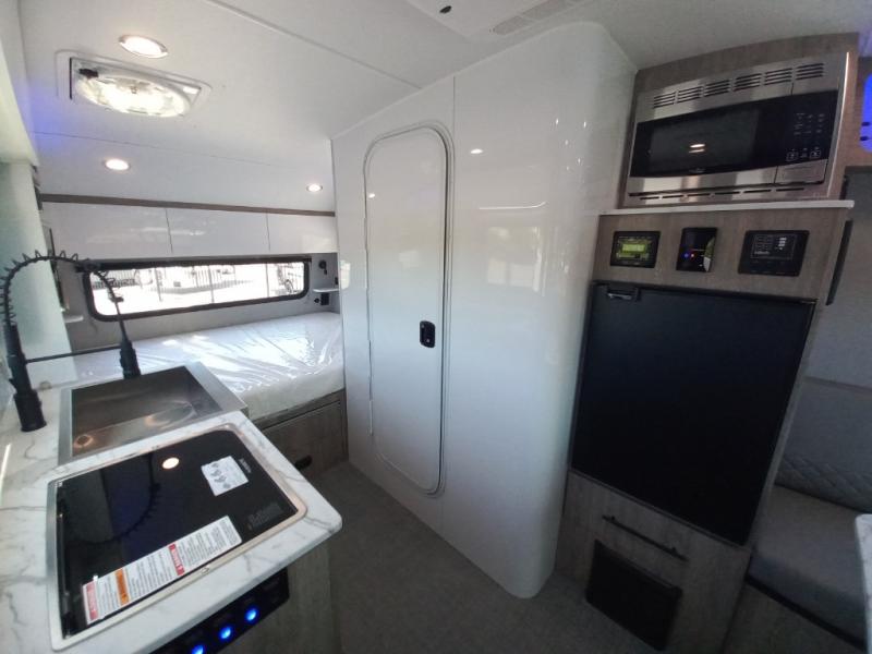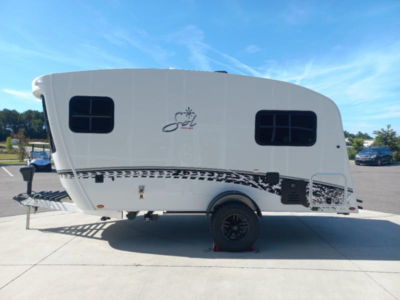 With any Sol travel trailer by inTech RV you will find strong, durable construction consisting of lightweight aluminum that is easier to tow and resists rust, water, and dents. The Tilt-Forward Design creates more space inside so you can stretch out, and the panoramic windshield gives a great view of the mountains, ocean, or forest! The elegant interior features tinted windows with shades, Infinity woven flooring, and a stainless steel cooktop and microwave. You will stay comfortable year around since these models include a 15K BTU A/C and a 16K BTU furnace. When the optional Rover Package is chosen on this model, you'll enjoy rugged decals, a 3" lift, blackout wheels, and more; see dealer for more details!