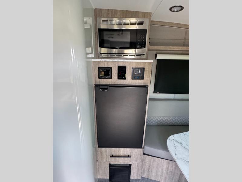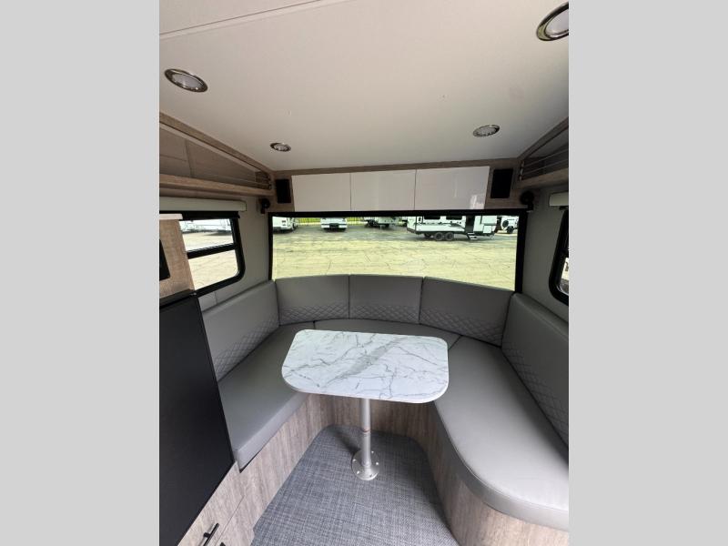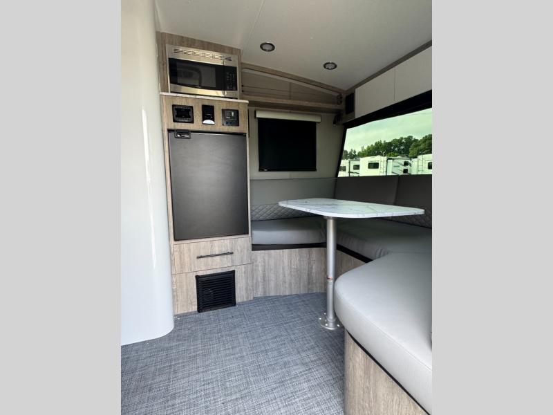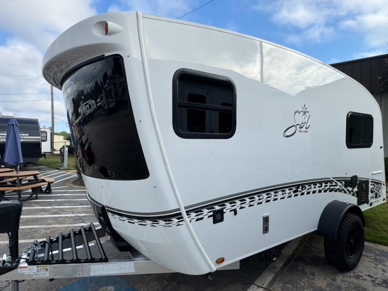 With any Sol travel trailer by inTech RV you will find strong, durable construction consisting of lightweight aluminum that is easier to tow and resists rust, water, and dents. The Tilt-Forward Design creates more space inside so you can stretch out, and the panoramic windshield gives a great view of the mountains, ocean, or forest! The elegant interior features tinted windows with shades, Infinity woven flooring, and a stainless steel cooktop and microwave. You will stay comfortable year around since these models include a 15K BTU A/C and a 16K BTU furnace. When the optional Rover Package is chosen on this model, you'll enjoy rugged decals, a 3" lift, blackout wheels, and more; see dealer for more details!