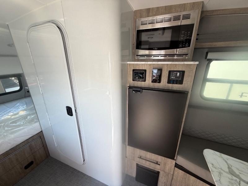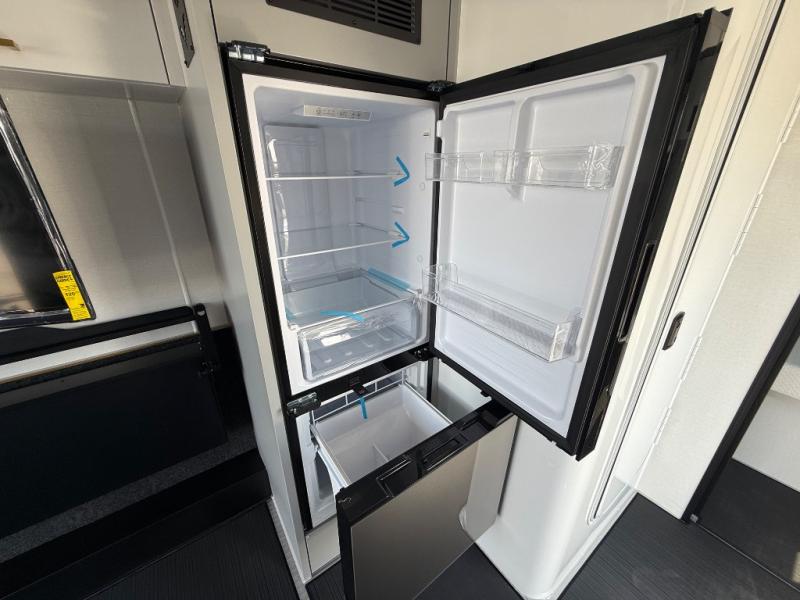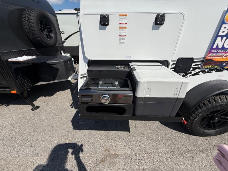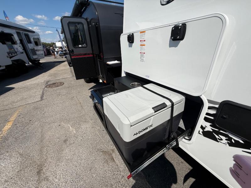 You will love the added space in this travel trailer that can sleep four people each night. There is a queen-size bed in the back, plus a convertible U-shaped dinette up front for the kids or your camping friends. The kitchen includes a two burner stainless steel cooktop, a stainless steel microwave, and a 4.5 12V compressor refrigerator for your perishables. You can also add the optional 10' power awning outside for shade as you visit with loved ones! This model has a dry weight that ranges from 3,113-3,543 lbs., a tongue weight between 465-495 lbs., and a carrying capacity between 525-610 lbs. When the optional Rover Package is chosen on this model, you'll enjoy rugged decals, a 3" lift, blackout wheels, and more; see dealer for more details!