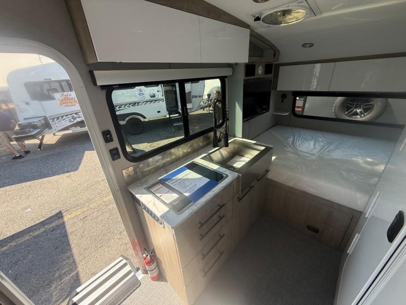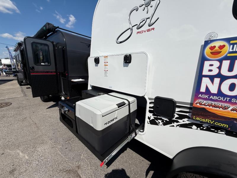 With any Sol travel trailer by inTech RV you will find strong, durable construction consisting of lightweight aluminum that is easier to tow and resists rust, water, and dents. The Tilt-Forward Design creates more space inside so you can stretch out, and the panoramic windshield gives a great view of the mountains, ocean, or forest! The elegant interior features tinted windows with shades, Infinity woven flooring, and a stainless steel cooktop and microwave. You will stay comfortable year around since these models include a 15K BTU A/C and a 16K BTU furnace. When the optional Rover Package is chosen on this model, you'll enjoy rugged decals, a 3" lift, blackout wheels, and more; see dealer for more details!