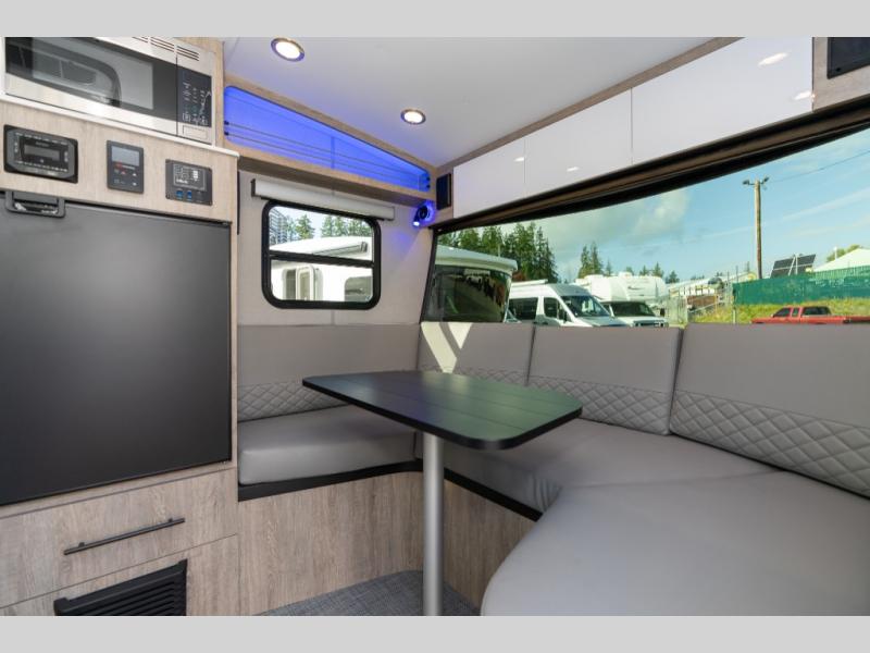 With any Sol travel trailer by inTech RV you will find strong, durable construction consisting of lightweight aluminum that is easier to tow and resists rust, water, and dents. The Tilt-Forward Design creates more space inside so you can stretch out, and the panoramic windshield gives a great view of the mountains, ocean, or forest! The elegant interior features tinted windows with shades, Infinity woven flooring, and a stainless steel cooktop and microwave. You will stay comfortable year around since these models include a 15K BTU A/C and a 16K BTU furnace. When the optional Rover Package is chosen on this model, you'll enjoy rugged decals, a 3" lift, blackout wheels, and more; see dealer for more details!