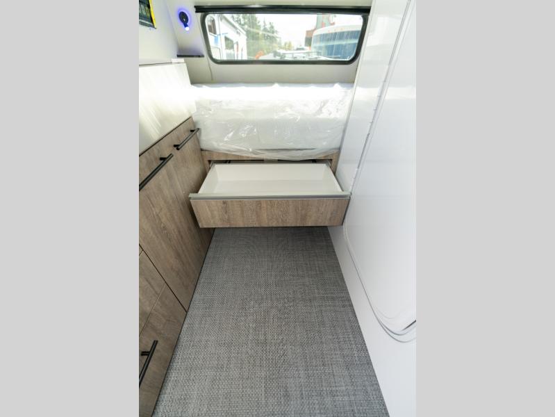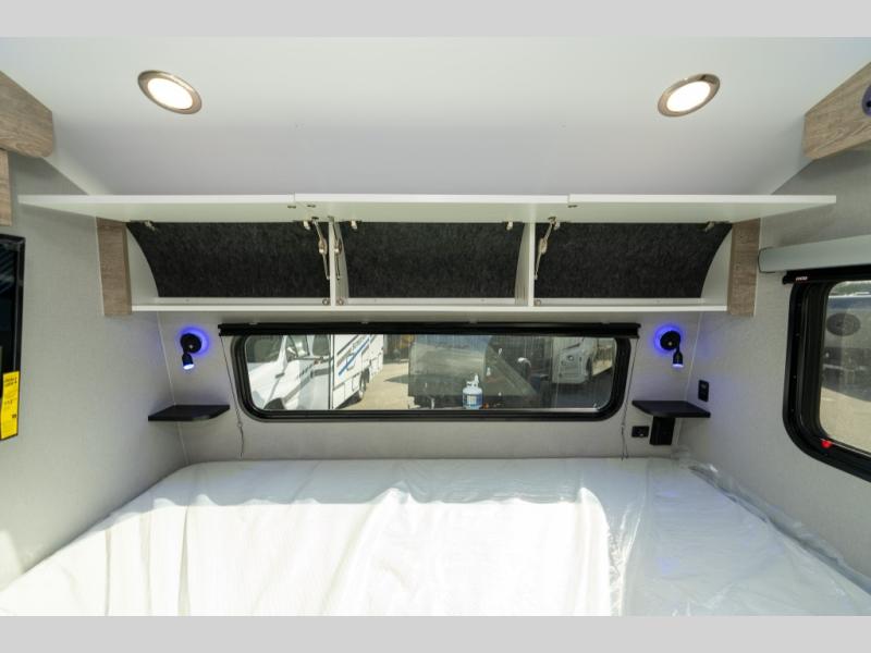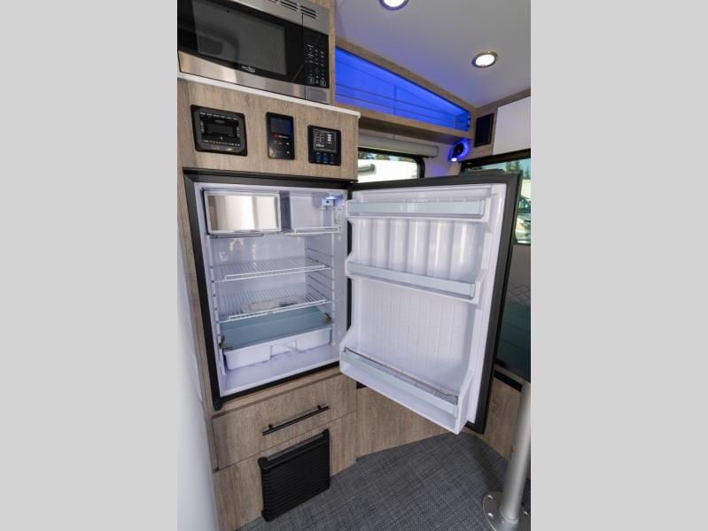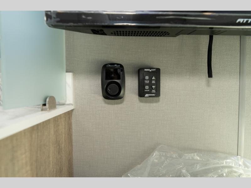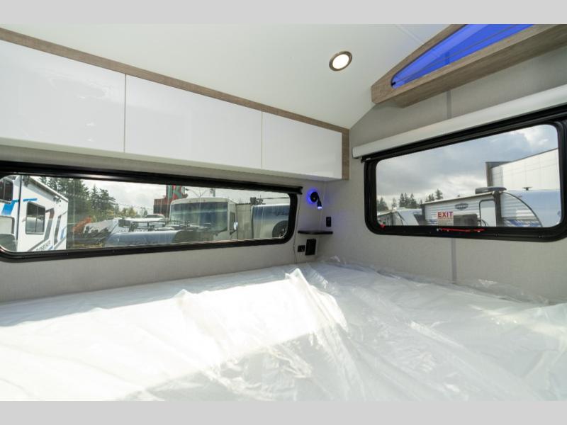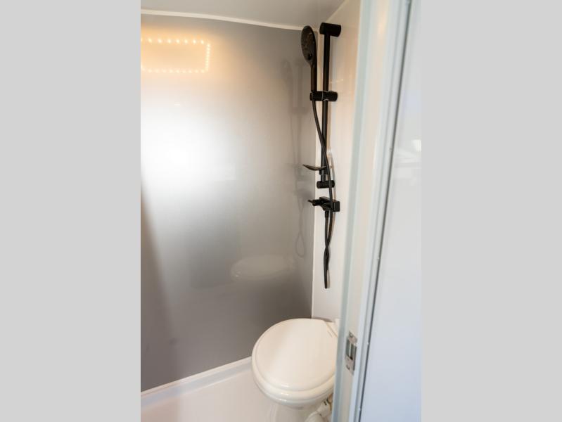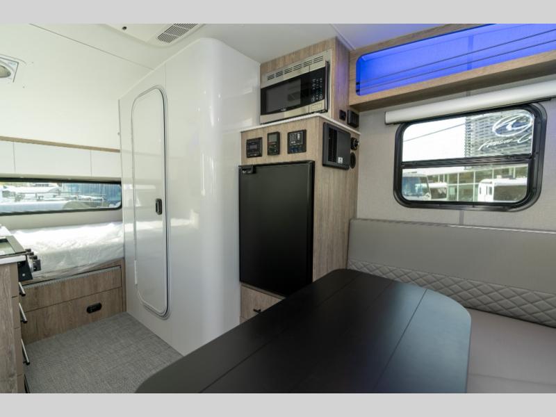 With any Sol travel trailer by inTech RV you will find strong, durable construction consisting of lightweight aluminum that is easier to tow and resists rust, water, and dents. The Tilt-Forward Design creates more space inside so you can stretch out, and the panoramic windshield gives a great view of the mountains, ocean, or forest! The elegant interior features tinted windows with shades, Infinity woven flooring, and a stainless steel cooktop and microwave. You will stay comfortable year around since these models include a 15K BTU A/C and a 16K BTU furnace. When the optional Rover Package is chosen on this model, you'll enjoy rugged decals, a 3" lift, blackout wheels, and more; see dealer for more details!