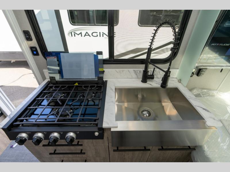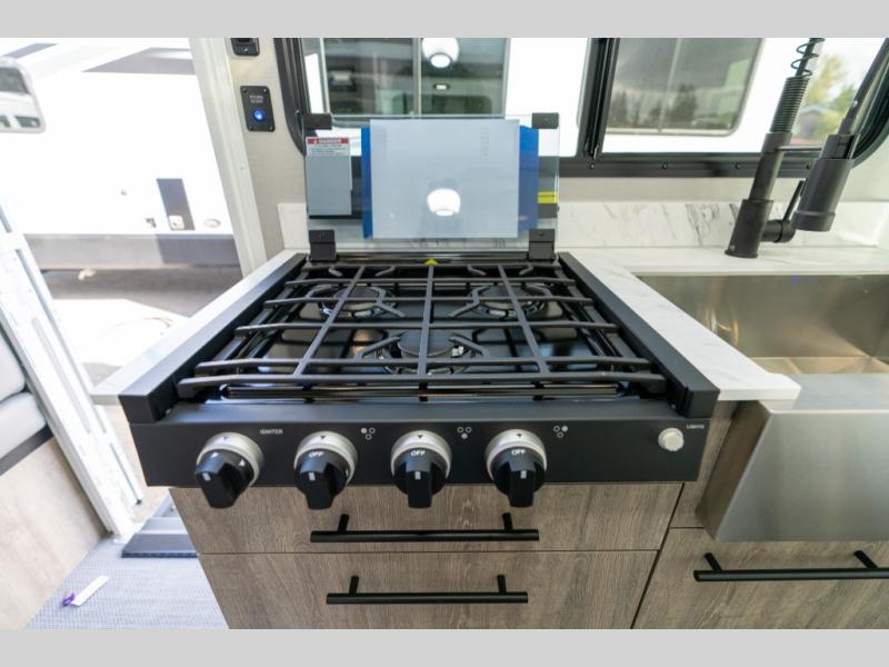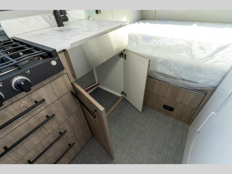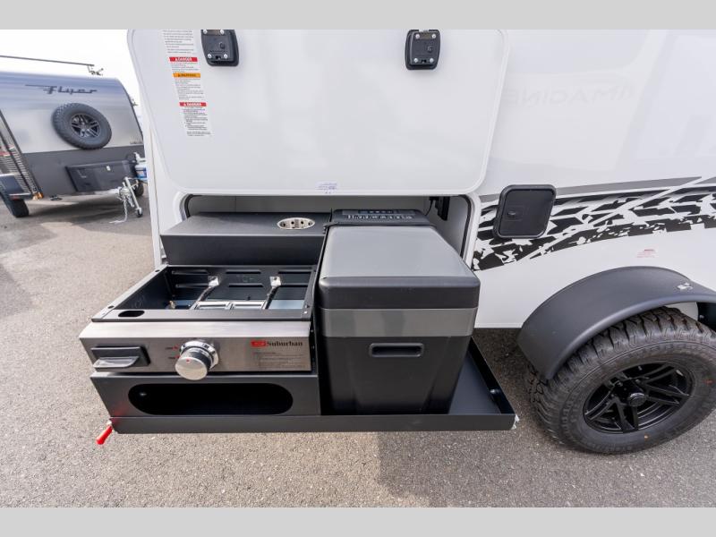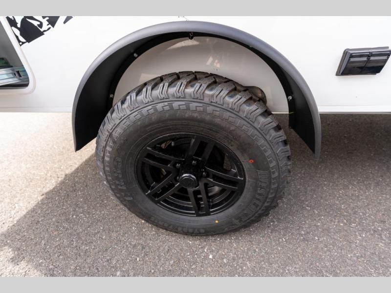 You will love the added space in this travel trailer that can sleep four people each night. There is a queen-size bed in the back, plus a convertible U-shaped dinette up front for the kids or your camping friends. The kitchen includes a two burner stainless steel cooktop, a stainless steel microwave, and a 4.5 12V compressor refrigerator for your perishables. You can also add the optional 10' power awning outside for shade as you visit with loved ones! This model has a dry weight that ranges from 3,113-3,543 lbs., a tongue weight between 465-495 lbs., and a carrying capacity between 525-610 lbs. When the optional Rover Package is chosen on this model, you'll enjoy rugged decals, a 3" lift, blackout wheels, and more; see dealer for more details!