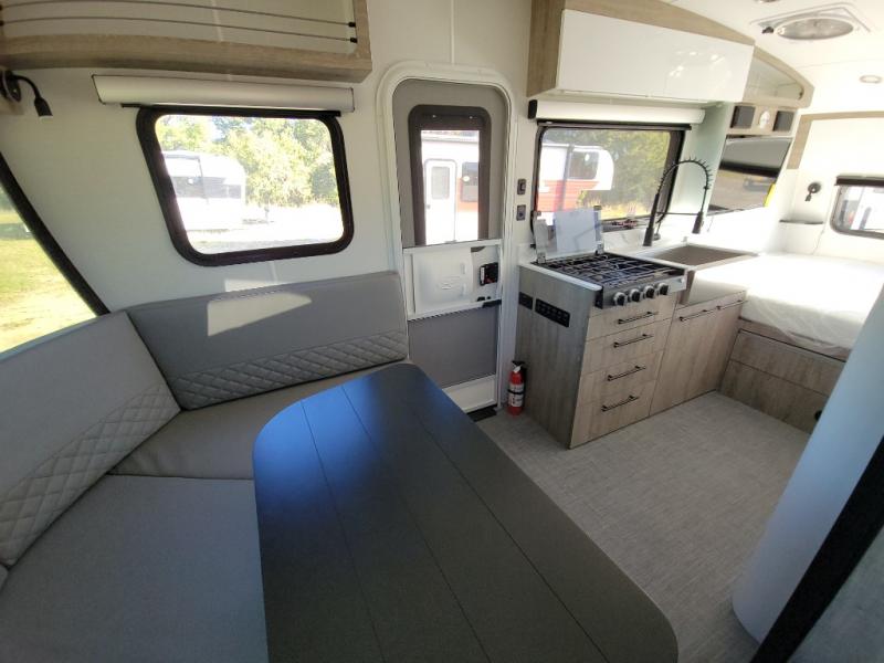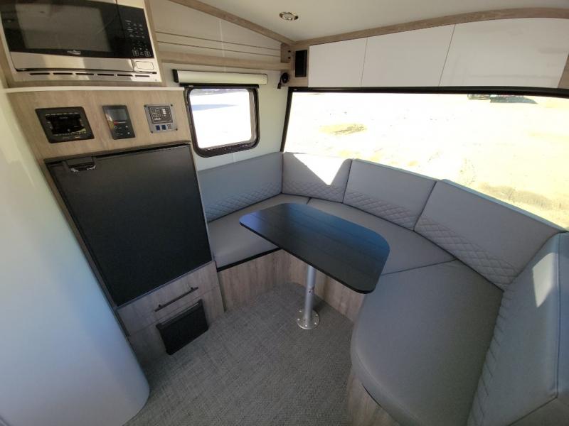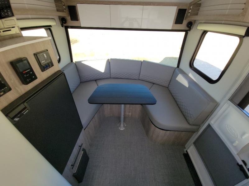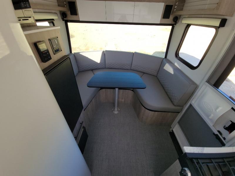 With any Sol travel trailer by inTech RV you will find strong, durable construction consisting of lightweight aluminum that is easier to tow and resists rust, water, and dents. The Tilt-Forward Design creates more space inside so you can stretch out, and the panoramic windshield gives a great view of the mountains, ocean, or forest! The elegant interior features tinted windows with shades, Infinity woven flooring, and a stainless steel cooktop and microwave. You will stay comfortable year around since these models include a 15K BTU A/C and a 16K BTU furnace. When the optional Rover Package is chosen on this model, you'll enjoy rugged decals, a 3" lift, blackout wheels, and more; see dealer for more details!