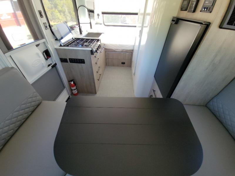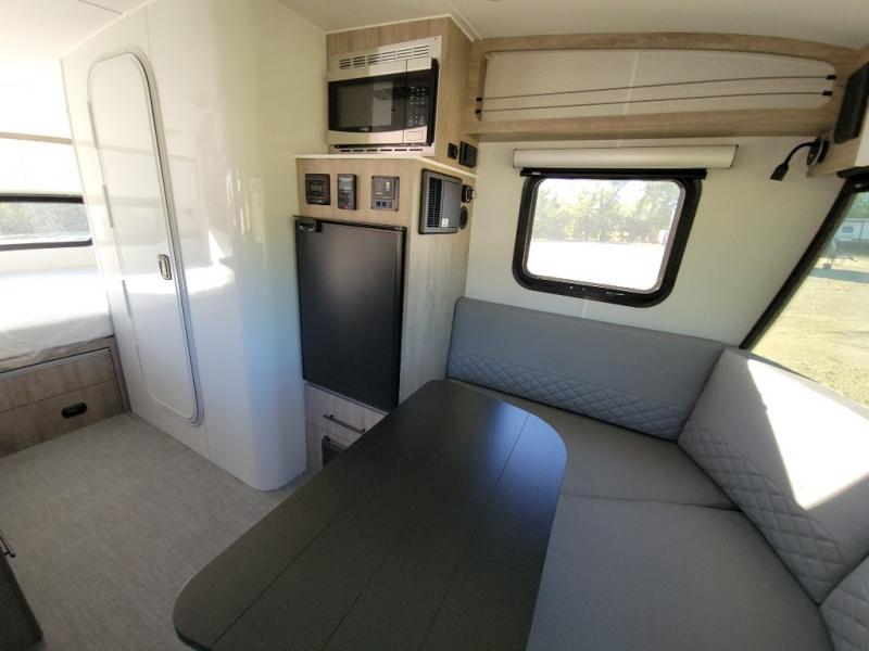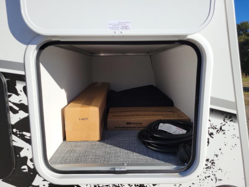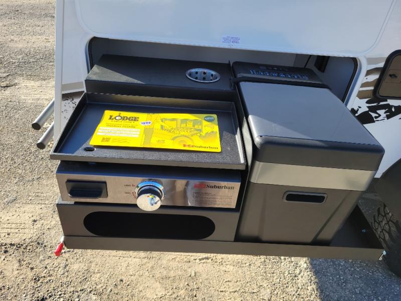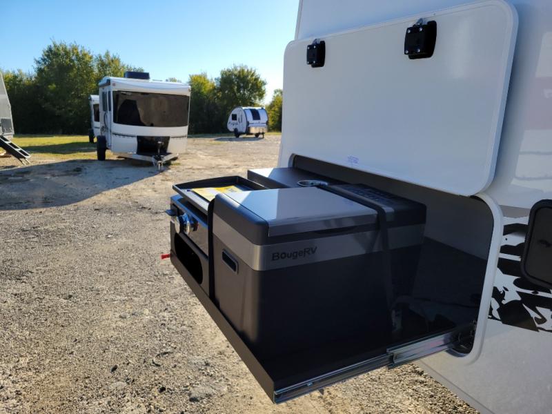 You will love the added space in this travel trailer that can sleep four people each night. There is a queen-size bed in the back, plus a convertible U-shaped dinette up front for the kids or your camping friends. The kitchen includes a two burner stainless steel cooktop, a stainless steel microwave, and a 4.5 12V compressor refrigerator for your perishables. You can also add the optional 10' power awning outside for shade as you visit with loved ones! This model has a dry weight that ranges from 3,113-3,543 lbs., a tongue weight between 465-495 lbs., and a carrying capacity between 525-610 lbs. When the optional Rover Package is chosen on this model, you'll enjoy rugged decals, a 3" lift, blackout wheels, and more; see dealer for more details!