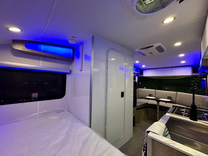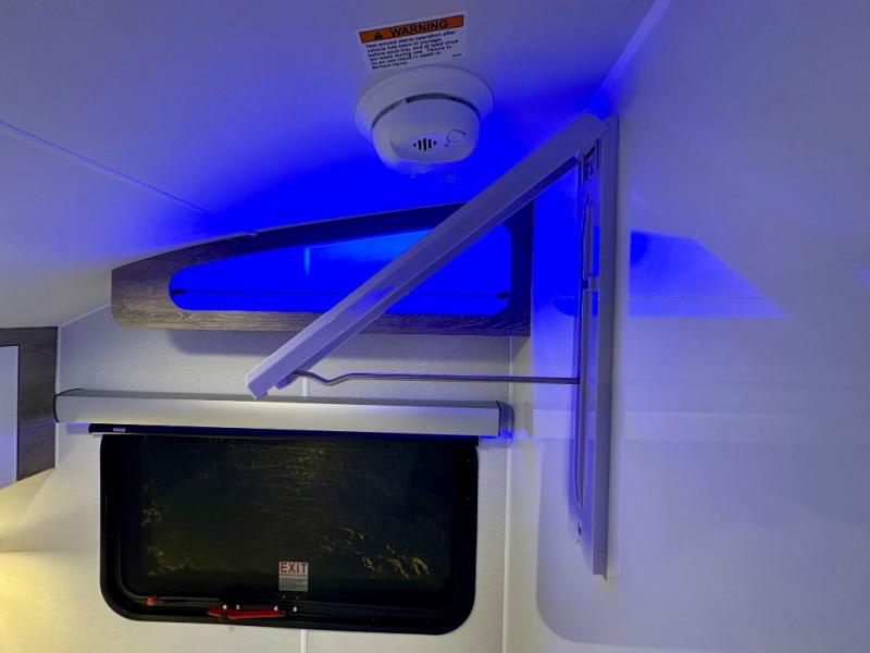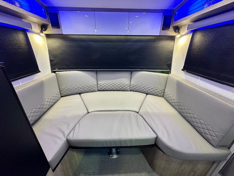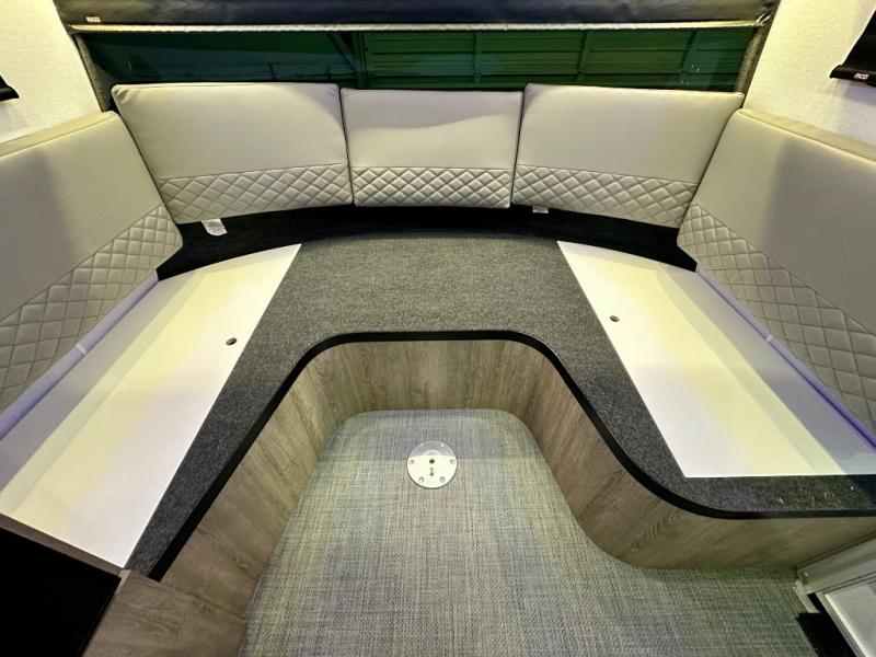 With any Sol travel trailer by inTech RV you will find strong, durable construction consisting of lightweight aluminum that is easier to tow and resists rust, water, and dents. The Tilt-Forward Design creates more space inside so you can stretch out, and the panoramic windshield gives a great view of the mountains, ocean, or forest! The elegant interior features tinted windows with shades, Infinity woven flooring, and a stainless steel cooktop and microwave. You will stay comfortable year around since these models include a 15K BTU A/C and a 16K BTU furnace. When the optional Rover Package is chosen on this model, you'll enjoy rugged decals, a 3" lift, blackout wheels, and more; see dealer for more details!