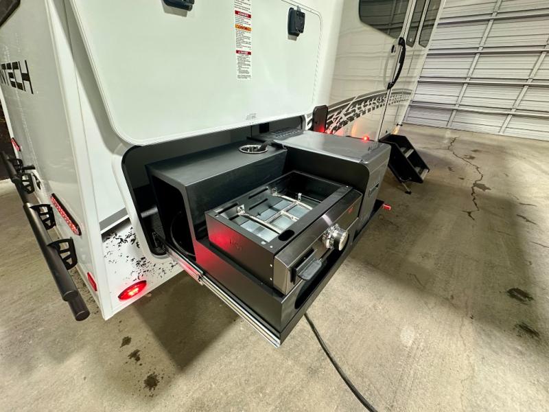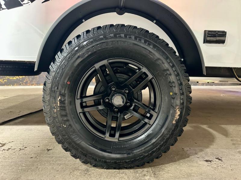 You will love the added space in this travel trailer that can sleep four people each night. There is a queen-size bed in the back, plus a convertible U-shaped dinette up front for the kids or your camping friends. The kitchen includes a two burner stainless steel cooktop, a stainless steel microwave, and a 4.5 12V compressor refrigerator for your perishables. You can also add the optional 10' power awning outside for shade as you visit with loved ones! This model has a dry weight that ranges from 3,113-3,543 lbs., a tongue weight between 465-495 lbs., and a carrying capacity between 525-610 lbs. When the optional Rover Package is chosen on this model, you'll enjoy rugged decals, a 3" lift, blackout wheels, and more; see dealer for more details!