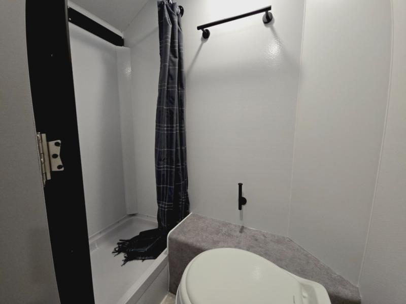 This is the perfect travel trailer to take on weekend trips to the lake! Once you've arrived at the campground, you can set up the power awning with LED lights and unload your gear from the large side mount compartment door. Head inside to make lunch on the two-burner propane cooktop or in the microwave oven. There is a 3.3 cu. ft. refrigerator to store fold items plus an overhead cabinet for spices or other essentials. You will love sleeping on the front full-size bed while your guests or little ones take the twin-size bunks! An optional 24" TV can be added if you want to watch movies in the evening, along with an optional Solar Package, optional large front window and more!