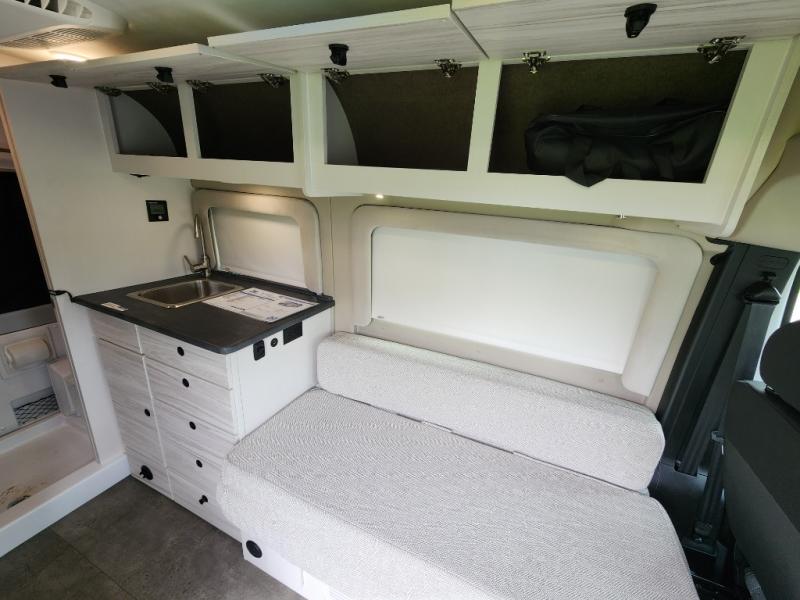 Enjoy every trip you take in this small, but mighty camper van! You will enjoy the drive just as much as the destination with a 10.1" Uconnect 5 NAV infotainment center and a ParkView rear backup camera. There is a 54" sofa to relax on once you park, and at night you can convert the sofa to a 54" x 72" bed. And the 27" bench seat is close by the entrance to provide a place to pull on your hiking boots. After you've worked up an appetite outdoors, you can prepare lunch on the portable induction cooktop, clean up with the stainless steel sink with a cover, and store leftovers in the 3 cu. ft. refrigerator/freezer. This model also includes a rear wet bath so you can freshen up before bed, and the bath wardrobe will let you keep your clothes and towels tidy!