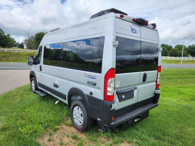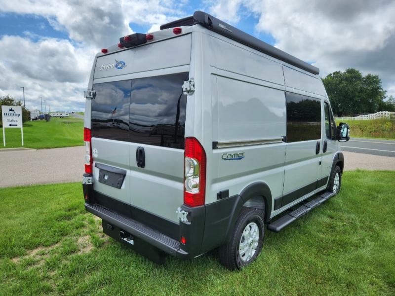 The small and nimble Comet Class B gas motorhome by Jayco is ready for adventure when you are! You'll appreciate the RAM ProMaster 1500 cargo van chassis for a strong and durable foundation, and the 17' 10" overall length means you can easily squeeze into parking spots even in the big city. There are added safety features for your peace of mind, like the LaneSense lane departure warning, drowsy driver detection, and forward collision warning with active braking. An Aqua-Hot GEN-1 hydronic water and heating system will provide hot water and heat when you need it, and the Winegard Connect 2.0 4G/Wi-Fi/digital TV antenna will help keep you connected as you're away from home. You'll be surprised by the interior comforts and functionality found in this compact camper van, including a convertible sofa/bed, residential vinyl flooring, swivel seats, and an adjustable table with multiple mounts to name a few!