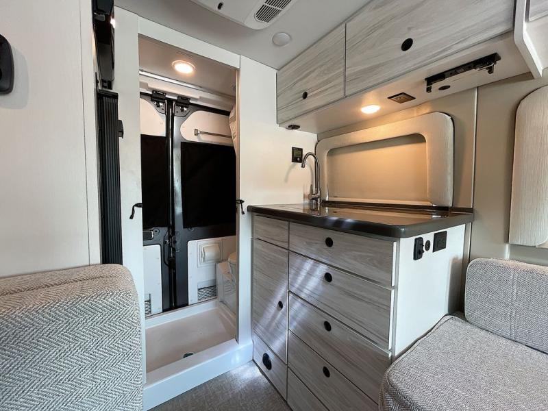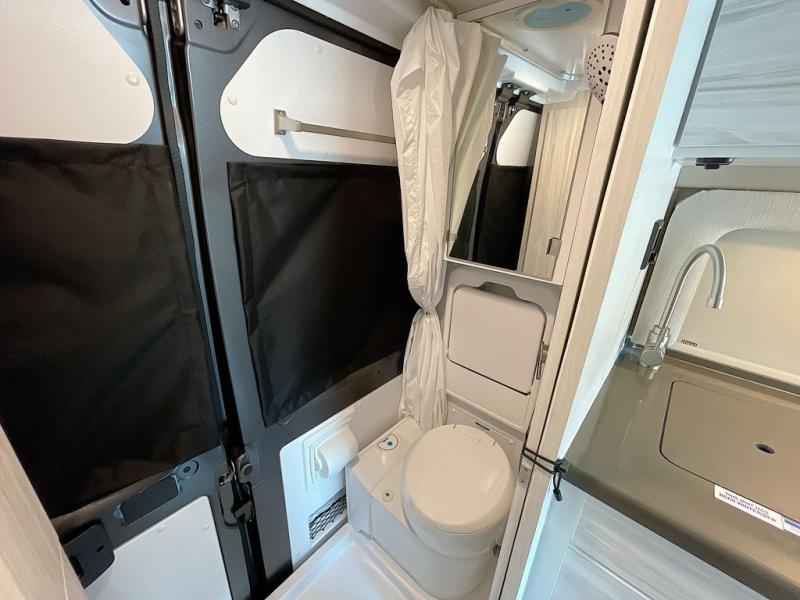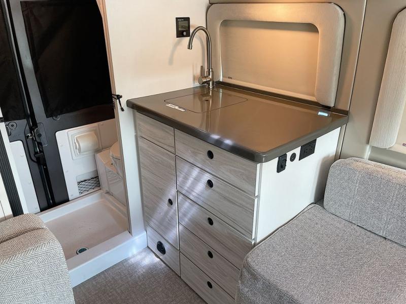 Enjoy every trip you take in this small, but mighty camper van! You will enjoy the drive just as much as the destination with a 10.1" Uconnect 5 NAV infotainment center and a ParkView rear backup camera. There is a 54" sofa to relax on once you park, and at night you can convert the sofa to a 54" x 72" bed. And the 27" bench seat is close by the entrance to provide a place to pull on your hiking boots. After you've worked up an appetite outdoors, you can prepare lunch on the portable induction cooktop, clean up with the stainless steel sink, and store leftovers in the 3 cu. ft. refrigerator/freezer. This model also includes a rear wet bath so you can freshen up before bed, and the bath wardrobe will let you keep your clothes and towels tidy!