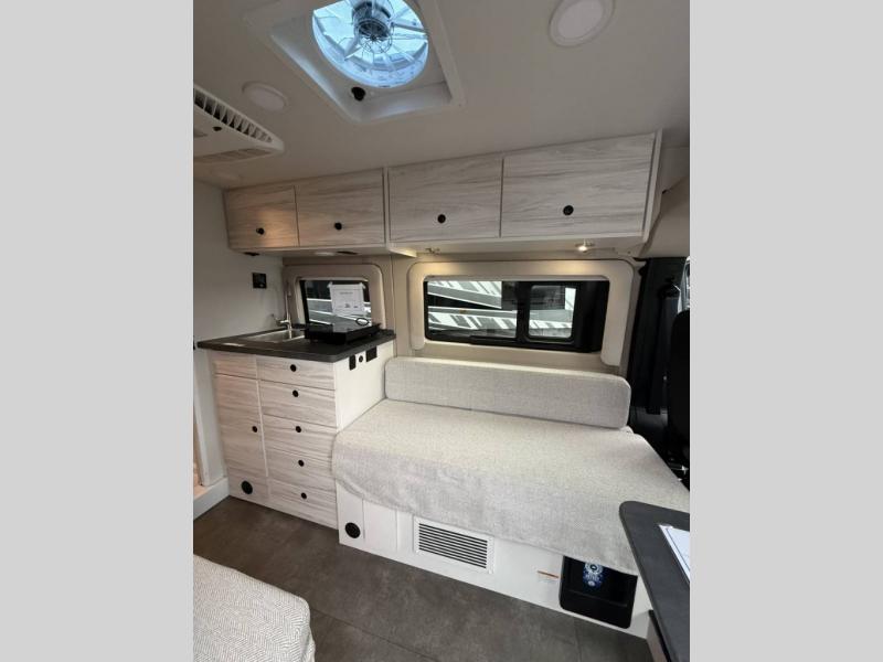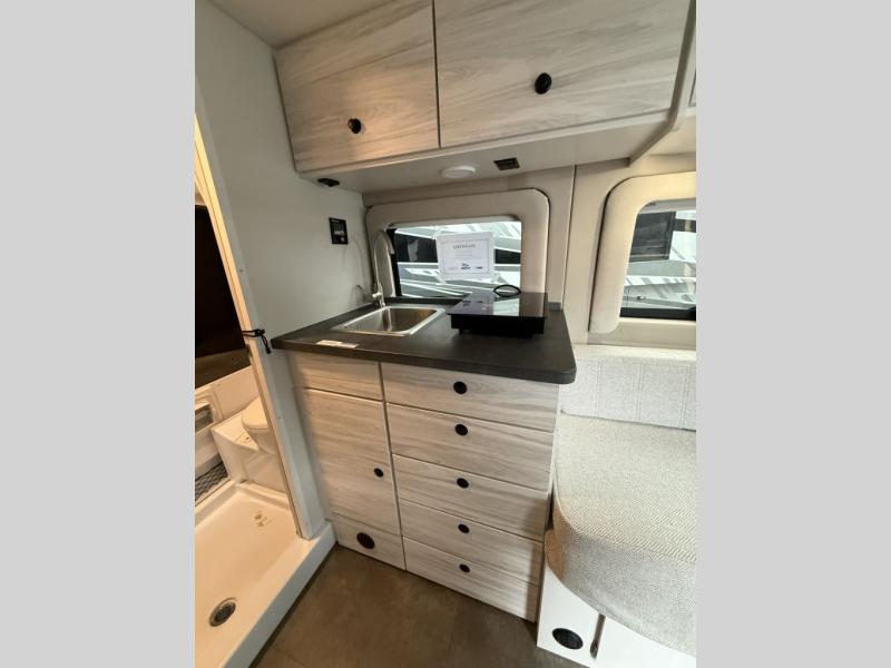 Enjoy every trip you take in this small, but mighty camper van! You will enjoy the drive just as much as the destination with a 10.1" Uconnect 5 NAV infotainment center and a ParkView rear backup camera. There is a 54" sofa to relax on once you park, and at night you can convert the sofa to a 54" x 72" bed. And the 27" bench seat is close by the entrance to provide a place to pull on your hiking boots. After you've worked up an appetite outdoors, you can prepare lunch on the portable induction cooktop, clean up with the stainless steel sink, and store leftovers in the 3 cu. ft. refrigerator/freezer. This model also includes a rear wet bath so you can freshen up before bed, and the bath wardrobe will let you keep your clothes and towels tidy!