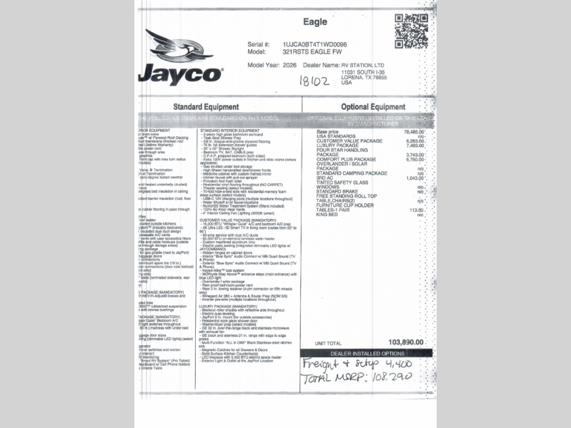 New 2026 Jayco Eagle 321RSTS Fifth Wheel
