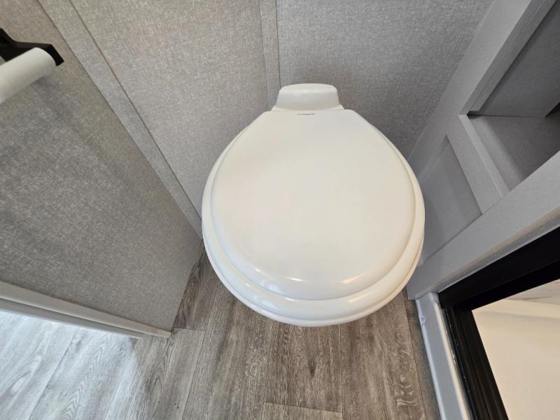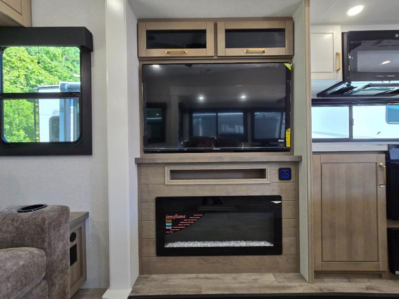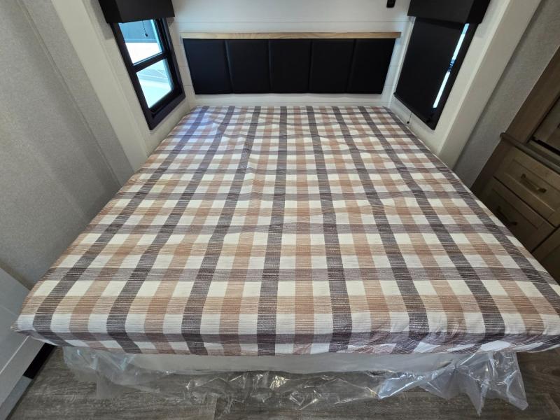 This fifth wheel is a great choice for couples or small families who want a residential-style setup with lots of storage, a large kitchen, and climate protection for extended travel.