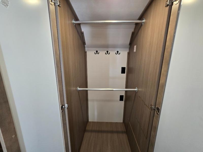 King Bed Slide Out – Spacious private bedroom with a king bed, large wardrobe, and plenty of storage.