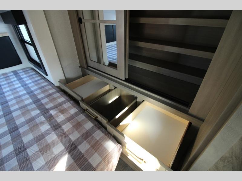 With any Eagle fifth wheel by Jayco you will appreciate durable construction materials, like the Magnum Truss Roof and the Stronghold VBL laminated walls. The JAYCOMMAND Smart RV system puts you in control of your RV's functions, and the 5 Star Handling Package will provide smooth towing from home to camp. Each model features Climate Shield zero-degree tested weather protection and the industry-exclusive HELIX cooling system that features two 15,000 BTU Whisper Quiet A/C's to keep you comfortable year around. Some of the exterior conveniences you are sure to love are the pass-through storage with Slam-Latch baggage doors and an automotive style front cap with max turn radius. The Eagle fifth wheels are designed to make you feel at home with solid hardwood slide fascia, residential vinyl flooring throughout, 100% no floor vents, and blackout roller shades with reflective side throughout for added privacy and insulation.