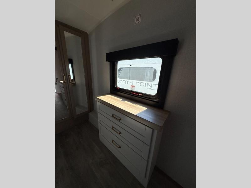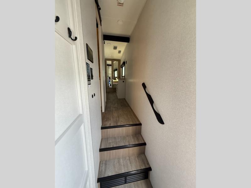 With any Eagle fifth wheel by Jayco you will appreciate durable construction materials, like the Magnum Truss Roof and the Stronghold VBL laminated walls. The JAYCOMMAND Smart RV system puts you in control of your RV's functions, and the 5 Star Handling Package will provide smooth towing from home to camp. Each model features Climate Shield zero-degree tested weather protection and the industry-exclusive HELIX cooling system that features two 15,000 BTU Whisper Quiet A/C's to keep you comfortable year around. Some of the exterior conveniences you are sure to love are the pass-through storage with Slam-Latch baggage doors and an automotive style front cap with max turn radius. The Eagle fifth wheels are designed to make you feel at home with solid hardwood slide fascia, residential vinyl flooring throughout, 100% no floor vents, and blackout roller shades with reflective side throughout for added privacy and insulation.
