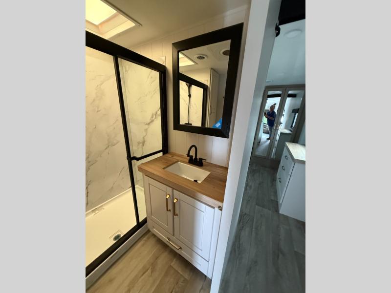 With any Eagle fifth wheel by Jayco you will appreciate durable construction materials, like the Magnum Truss Roof and the Stronghold VBL laminated walls. The JAYCOMMAND Smart RV system puts you in control of your RV's functions, and the 5 Star Handling Package will provide smooth towing from home to camp. Each model features Climate Shield zero-degree tested weather protection and the industry-exclusive HELIX cooling system that features two 15,000 BTU Whisper Quiet A/C's to keep you comfortable year around. Some of the exterior conveniences you are sure to love are the pass-through storage with Slam-Latch baggage doors and an automotive style front cap with max turn radius. The Eagle fifth wheels are designed to make you feel at home with solid hardwood slide fascia, residential vinyl flooring throughout, 100% no floor vents, and blackout roller shades with reflective side throughout for added privacy and insulation.