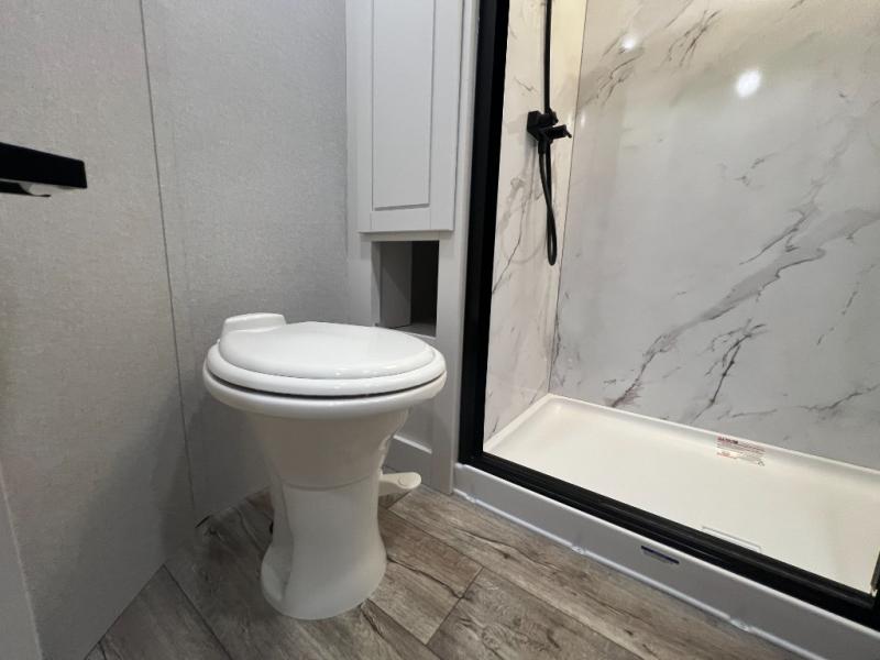 With any Eagle fifth wheel by Jayco you will appreciate durable construction materials, like the Magnum Truss Roof and the Stronghold VBL laminated walls. The JAYCOMMAND Smart RV system puts you in control of your RV's functions, and the 5 Star Handling Package will provide smooth towing from home to camp. Each model features Climate Shield zero-degree tested weather protection and the industry-exclusive HELIX cooling system that features two 15,000 BTU Whisper Quiet A/C's to keep you comfortable year around. Some of the exterior conveniences you are sure to love are the pass-through storage with Slam-Latch baggage doors and an automotive style front cap with max turn radius. The Eagle fifth wheels are designed to make you feel at home with solid hardwood slide fascia, residential vinyl flooring throughout, 100% no floor vents, and blackout roller shades with reflective side throughout for added privacy and insulation.