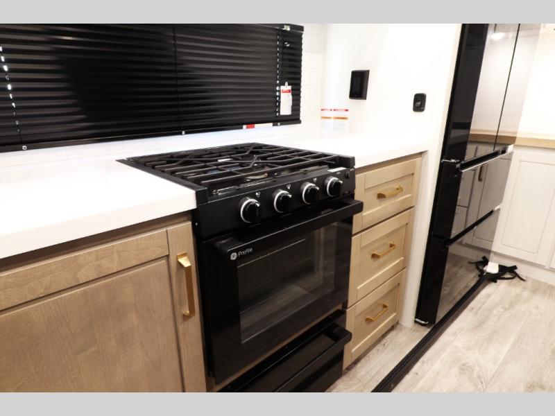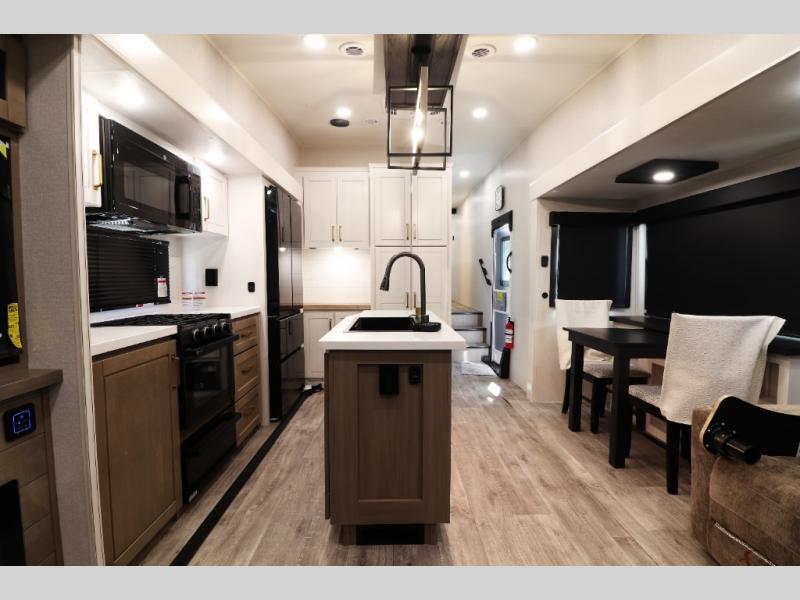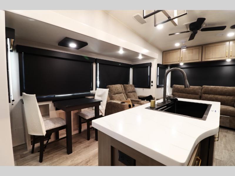 Outside kitchen, dual power awnings with dimmable LED lights, and pass-through storage for effortless al fresco dining.
