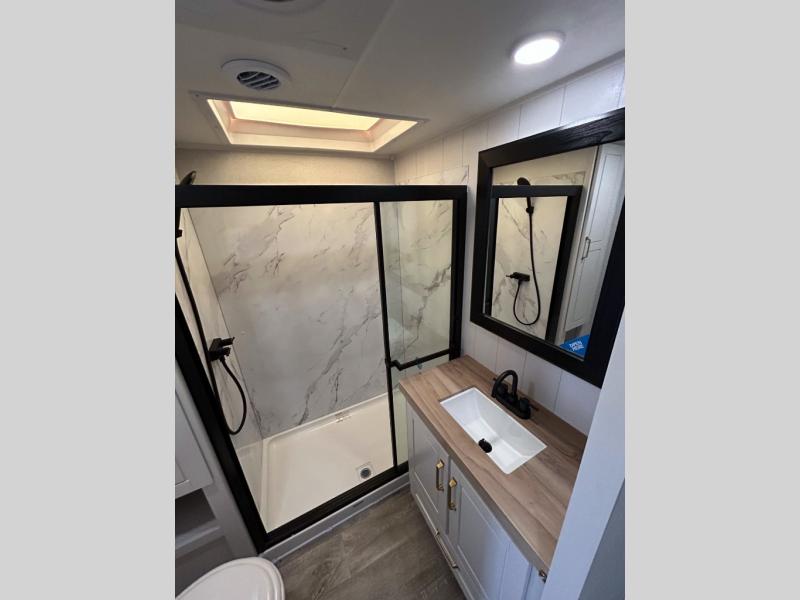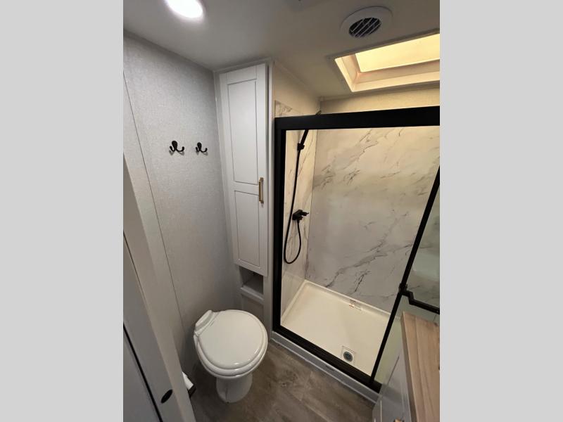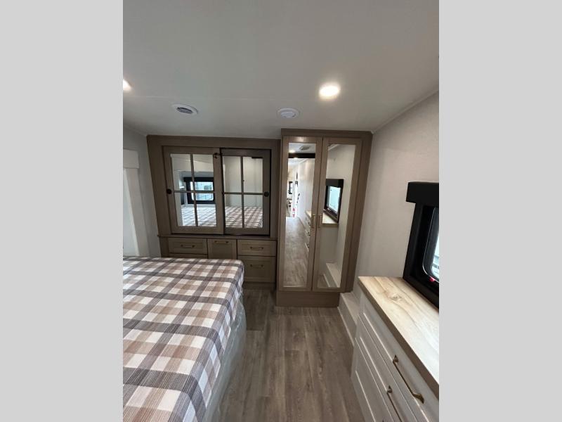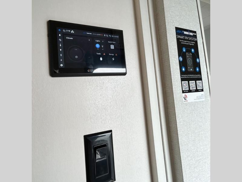 With any Eagle fifth wheel by Jayco you will appreciate durable construction materials, like the Magnum Truss Roof and the Stronghold VBL laminated walls. The JAYCOMMAND Smart RV system puts you in control of your RV's functions, and the 5 Star Handling Package will provide smooth towing from home to camp. Each model features Climate Shield zero-degree tested weather protection and the industry-exclusive HELIX cooling system that features two 15,000 BTU Whisper Quiet A/C's to keep you comfortable year around. Some of the exterior conveniences you are sure to love are the pass-through storage with Slam-Latch baggage doors and an automotive style front cap with max turn radius. The Eagle fifth wheels are designed to make you feel at home with solid hardwood slide fascia, residential vinyl flooring throughout, 100% no floor vents, and blackout roller shades with reflective side throughout for added privacy and insulation.