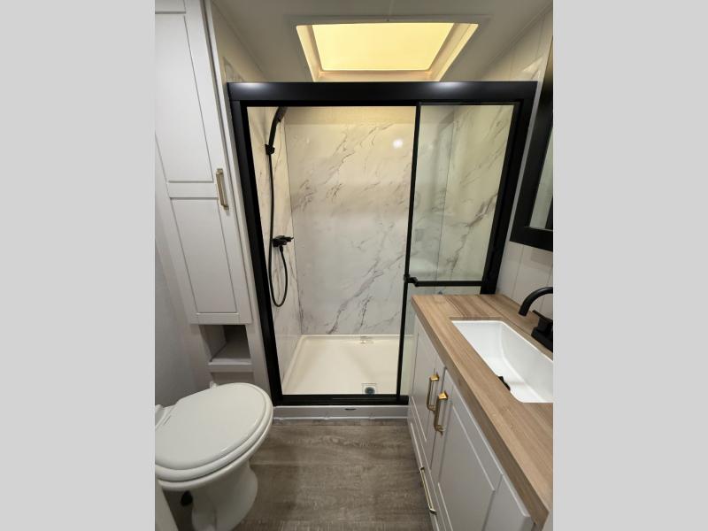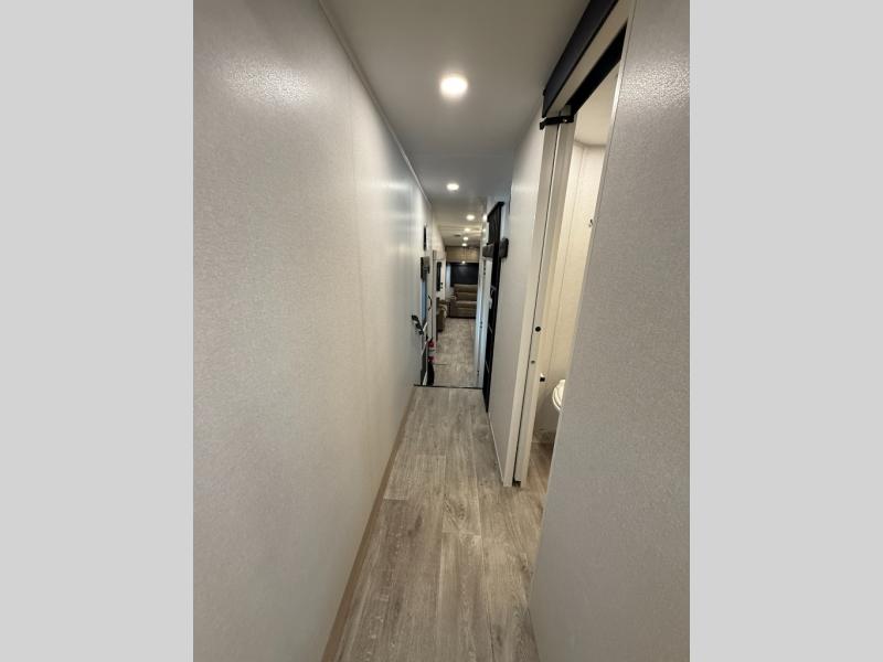 With any Eagle fifth wheel by Jayco you will appreciate durable construction materials, like the Magnum Truss Roof and the Stronghold VBL laminated walls. The JAYCOMMAND Smart RV system puts you in control of your RV's functions, and the 5 Star Handling Package will provide smooth towing from home to camp. Each model features Climate Shield zero-degree tested weather protection and the industry-exclusive HELIX cooling system that features two 15,000 BTU Whisper Quiet A/C's to keep you comfortable year around. Some of the exterior conveniences you are sure to love are the pass-through storage with Slam-Latch baggage doors and an automotive style front cap with max turn radius. The Eagle fifth wheels are designed to make you feel at home with solid hardwood slide fascia, residential vinyl flooring throughout, 100% no floor vents, and blackout roller shades with reflective side throughout for added privacy and insulation.