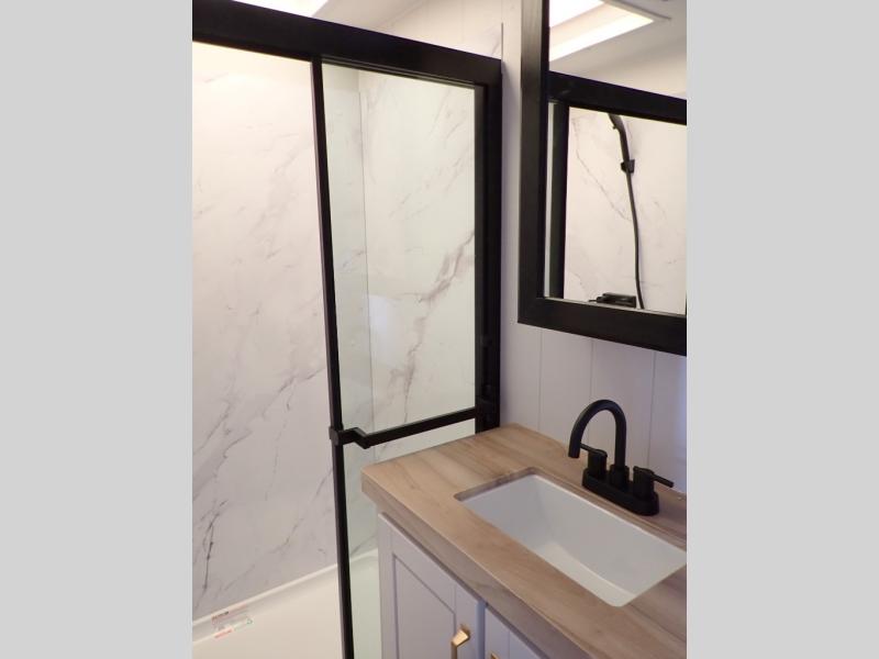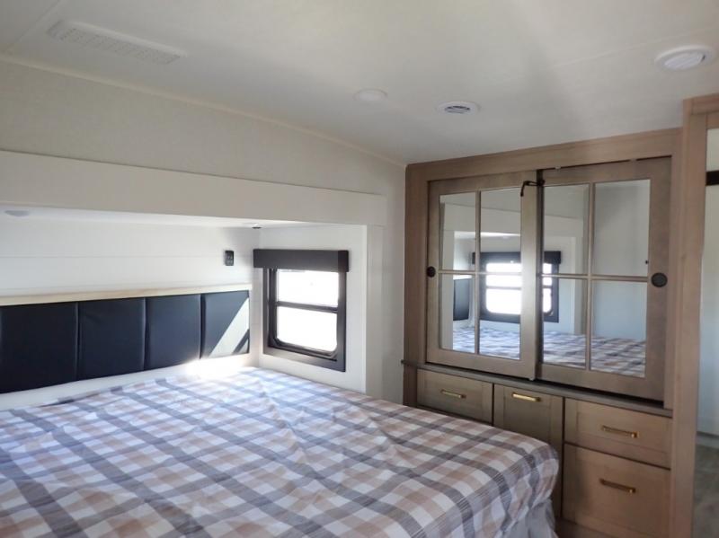 With any Eagle fifth wheel by Jayco you will appreciate durable construction materials, like the Magnum Truss Roof and the Stronghold VBL laminated walls. The JAYCOMMAND Smart RV system puts you in control of your RV's functions, and the 5 Star Handling Package will provide smooth towing from home to camp. Each model features Climate Shield zero-degree tested weather protection and the industry-exclusive HELIX cooling system that features two 15,000 BTU Whisper Quiet A/C's to keep you comfortable year around. Some of the exterior conveniences you are sure to love are the pass-through storage with Slam-Latch baggage doors and an automotive style front cap with max turn radius. The Eagle fifth wheels are designed to make you feel at home with solid hardwood slide fascia, residential vinyl flooring throughout, 100% no floor vents, and blackout roller shades with reflective side throughout for added privacy and insulation.