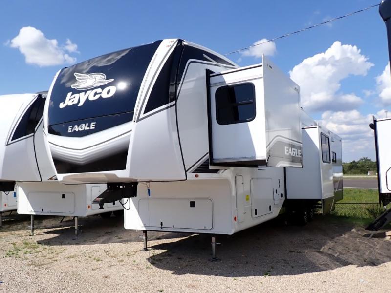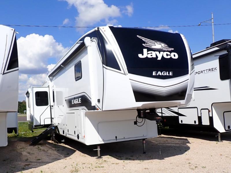 Hit the road in one of the most-trusted names in RVing, the Jayco Eagle. The Eagle fifth wheel takes all the best of the Eagle HT fifth wheel and adds even more luxury and comfort. All Eagle fifth wheels are full-time rated - designed for full-time, continuous, year-round use.