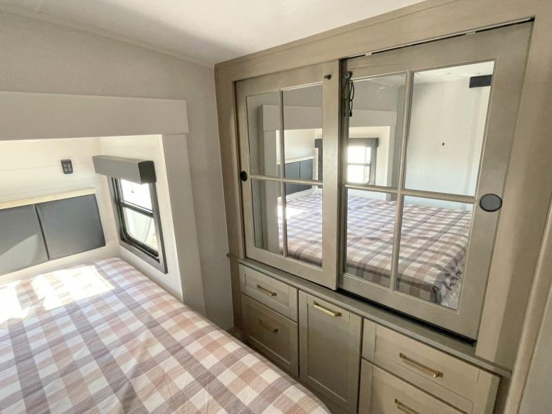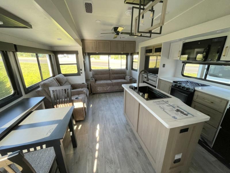 The 2026 Jayco Eagle 355MBQS is a luxurious and versatile fifth wheel, perfect for families, full-time RVers, and remote workers. With a middle bedroom/den, loft, private master suite, and spacious living area, this model blends comfort, functionality, and high-end design.