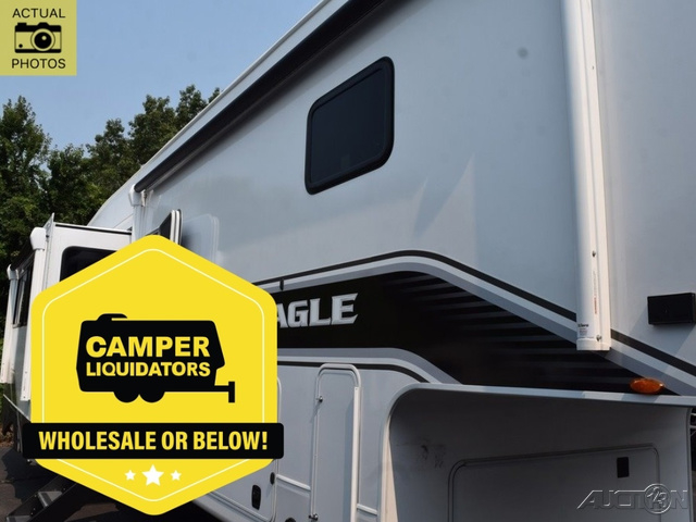 With any Eagle fifth wheel by Jayco you will appreciate durable construction materials, like the Magnum Truss Roof and the Stronghold VBL laminated walls. The JAYCOMMAND Smart RV system puts you in control of your RV's functions, and the 5 Star Handling Package will provide smooth towing from home to camp. Each model features Climate Shield zero-degree tested weather protection and the industry-exclusive HELIX cooling system that features two 15,000 BTU Whisper Quiet A/C's to keep you comfortable year around. Some of the exterior conveniences you are sure to love are the pass-through storage with Slam-Latch baggage doors and an automotive style front cap with max turn radius. The Eagle fifth wheels are designed to make you feel at home with solid hardwood slide fascia, residential vinyl flooring throughout, 100% no floor vents, and blackout roller shades with reflective side throughout for added privacy and insulation.