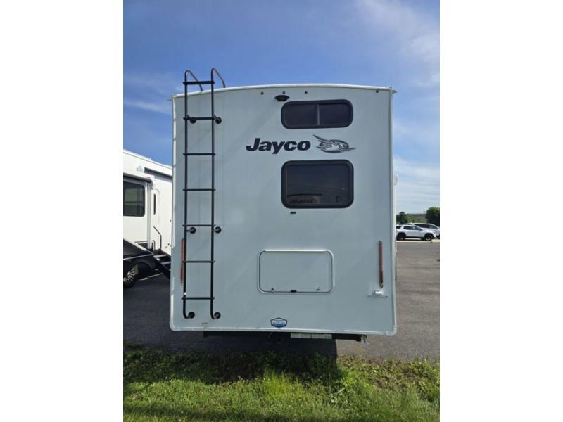 With any Eagle fifth wheel by Jayco you will appreciate durable construction materials, like the Magnum Truss Roof and the Stronghold VBL laminated walls. The JAYCOMMAND Smart RV system puts you in control of your RV's functions, and the 5 Star Handling Package will provide smooth towing from home to camp. Each model features Climate Shield zero-degree tested weather protection and the industry-exclusive HELIX cooling system that features two 15,000 BTU Whisper Quiet A/C's to keep you comfortable year around. Some of the exterior conveniences you are sure to love are the pass-through storage with Slam-Latch baggage doors and an automotive style front cap with max turn radius. The Eagle fifth wheels are designed to make you feel at home with solid hardwood slide fascia, residential vinyl flooring throughout, 100% no floor vents, and blackout roller shades with reflective side throughout for added privacy and insulation.