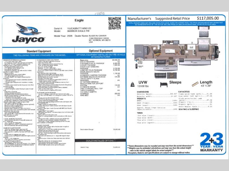 New 2026 Jayco Eagle 360DBOK Fifth Wheel