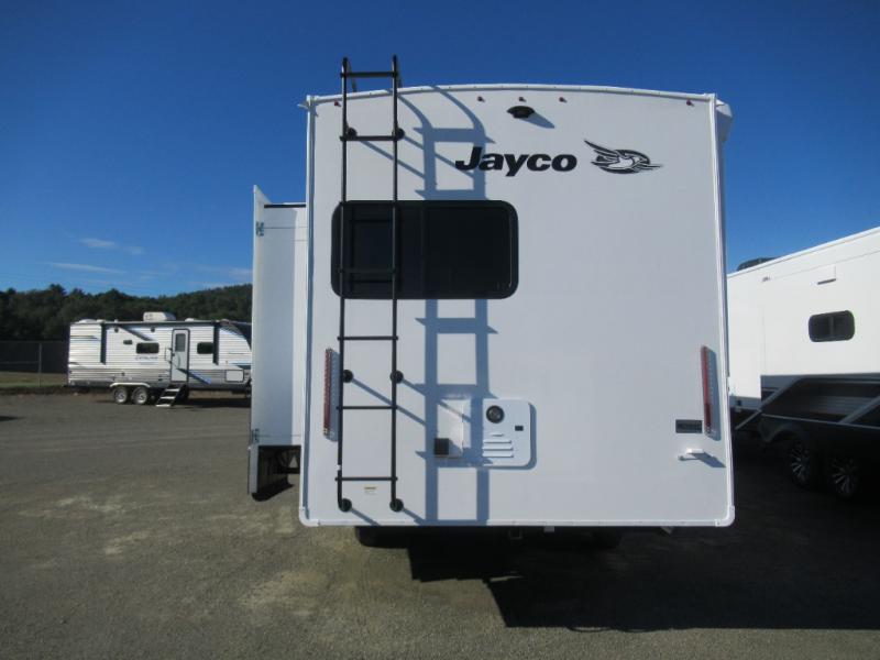 With any Eagle HT fifth wheel or travel trailer by Jayco you will enjoy a smooth drive thanks to the 4 Star Handling Package, Goodyear Endurance tires, and MORryde CRE-3000 rubberized suspension. The Customer Value Package includes amenities that are sure to make camping easier than ever, like the 60K on-demand water heater, Keyed-Alike lock system, 15,000 BTU "Whisper Quiet" A/C, and more. Handcrafted and glazed door/drawer fronts will make your space feel more like home, along with residential vinyl flooring throughout, GE appliances, and blackout roller shades with reflective side throughout to keep the sun out when you want to sleep in. Each model also includes a NuVo H2O water treatment system with filters included, interior and exterior "Blue Sync" audio connect with MB Quart Sound for your TV and phone, and 100% no floor vents for added comfort and convenience!