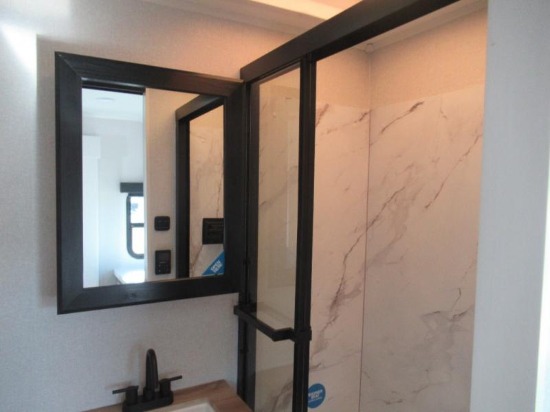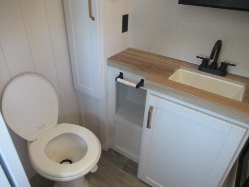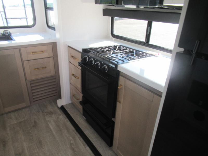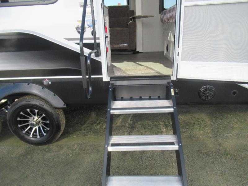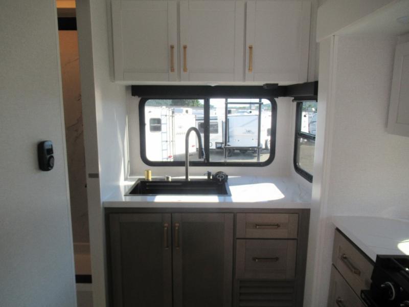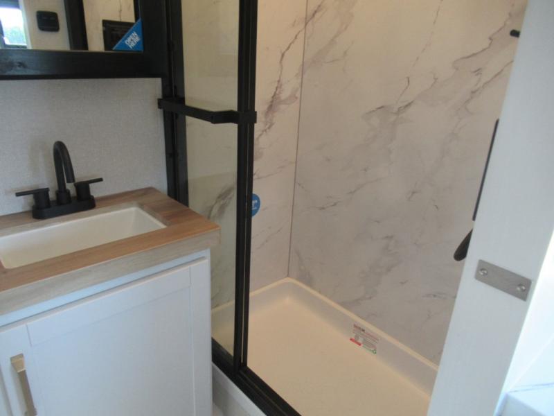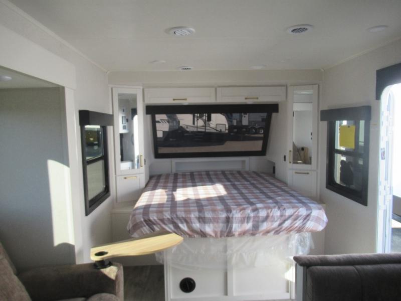 It will be so easy to enjoy camping trips when you're in this travel trailer! A full kitchen, complete with a three burner cooktop, over-the-range microwave, and 10 cu. ft. 12V refrigerator will let you cook and store meals, and the booth dinette provides a place to dine. Within the large slide, you'll find the 60" theater sofa with cup holders which is across from the 40" 4K Ultra LED HD Smart TV! You'll love having a 66" x 80" Olympic queen bed to sleep on, and there are dual wardrobes to keep your clothes organized. And larger camp gear can go outside in the pass-thru storage!