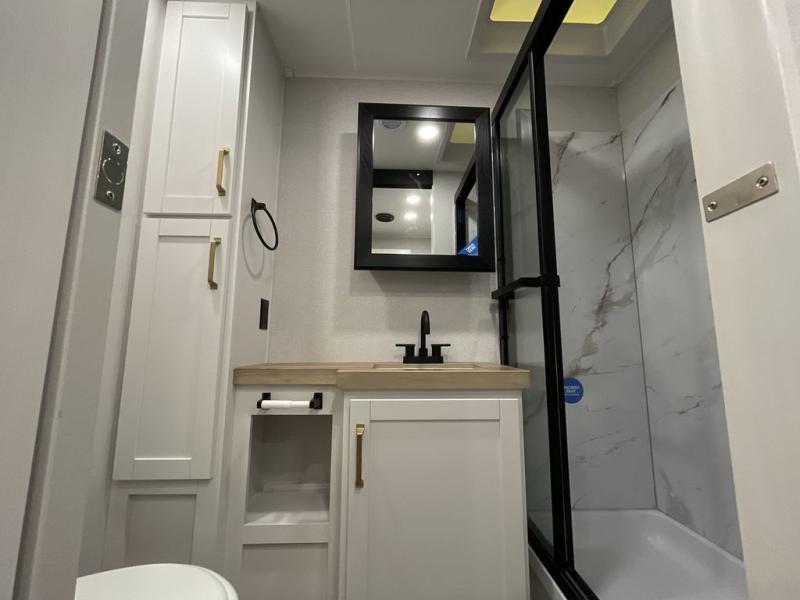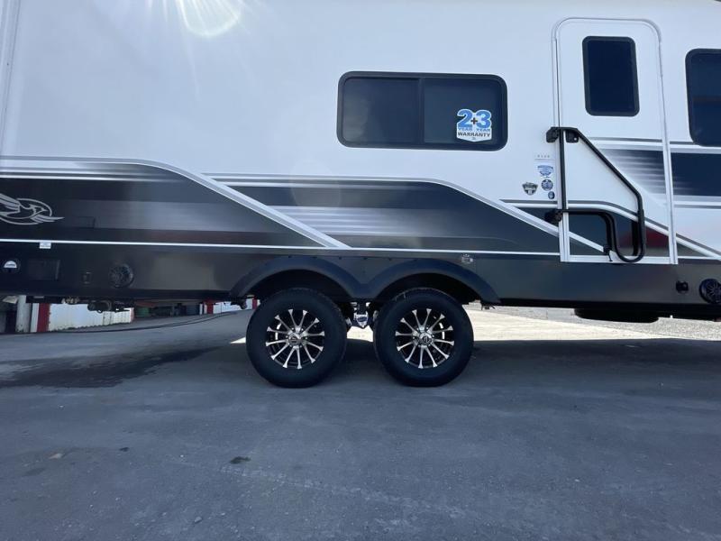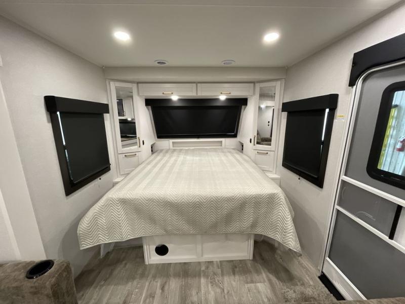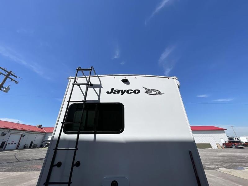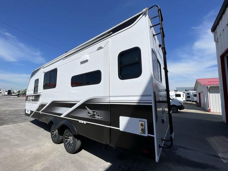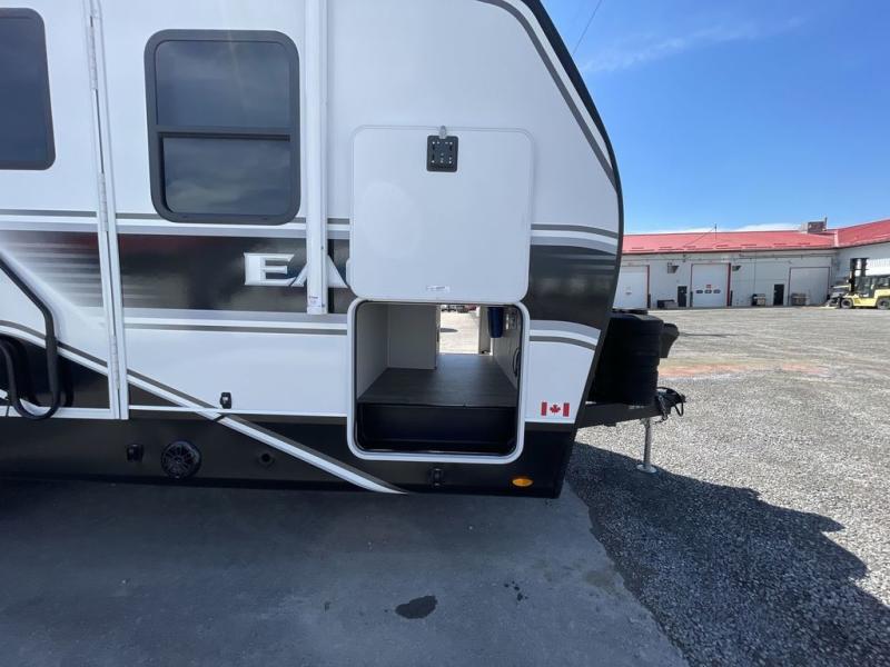 With any Eagle HT fifth wheel or travel trailer by Jayco you will enjoy a smooth drive thanks to the 4 Star Handling Package and MORryde CRE-3000 rubberized suspension. The Customer Value Package includes amenities that are sure to make camping easier than ever, like the 60K on-demand water heater, Keyed-Alike lock system, 15,000 BTU "Whisper Quiet" A/C, and more. Handcrafted door/drawer fronts will make your space feel more like home, along with residential vinyl flooring throughout, GE appliances, and blackout roller shades with reflective side throughout to keep the sun out when you want to sleep in. Each model also includes a NuVo H2O water treatment system with filters included, interior and exterior "Blue Sync" audio connect with MB Quart Sound for your TV and phone, and 100% no floor vents for added comfort and convenience!