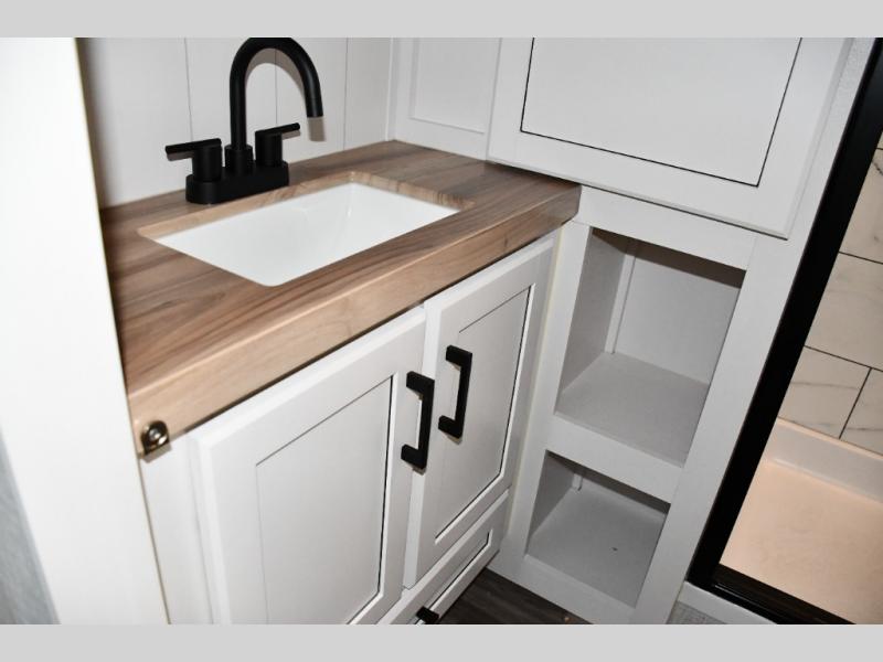 Full Bath – Includes a shower with skylight, mirrored vanity, and foot-flush toilet for all the comforts of home