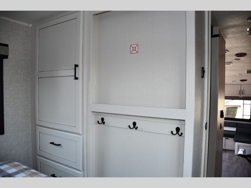Front Private Bedroom – Relax on an Olympic-size queen bed with dual wardrobes for all your clothing and gear