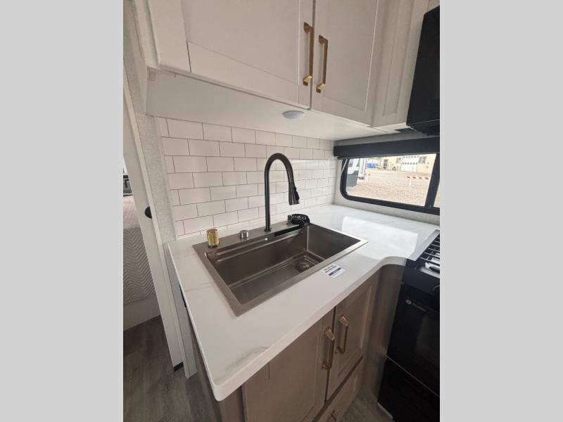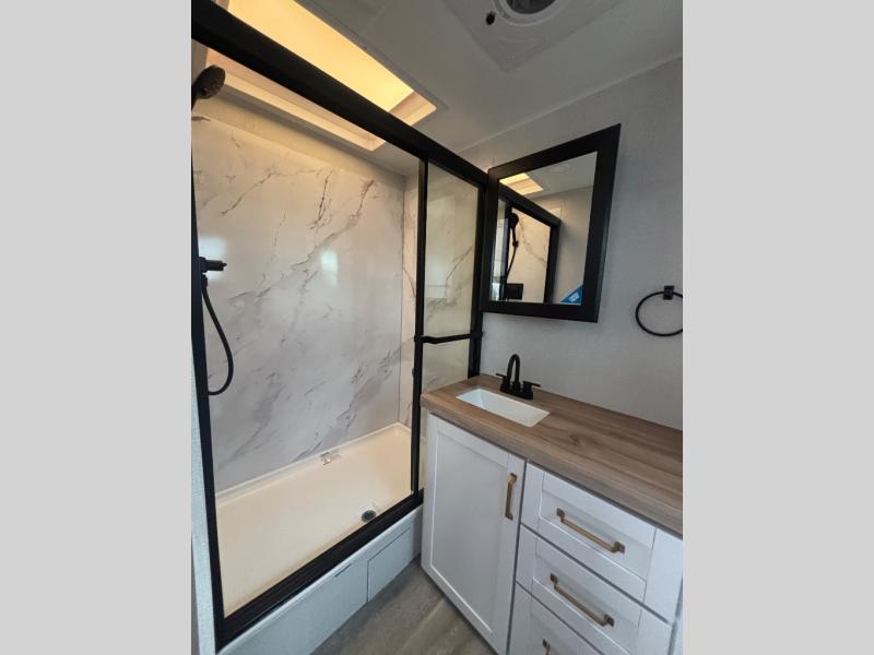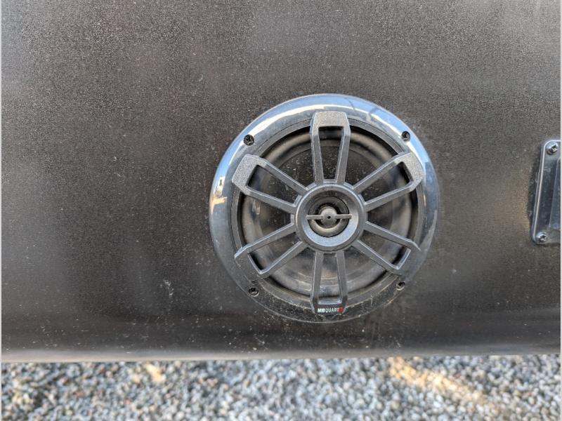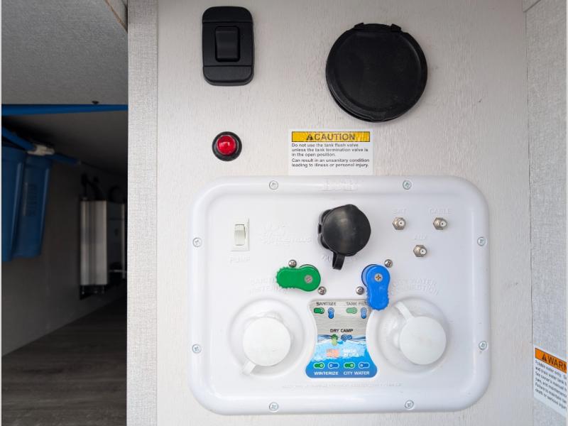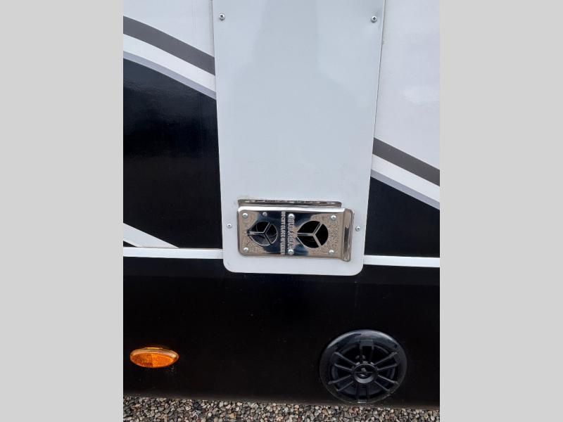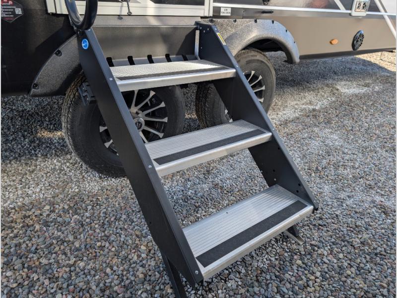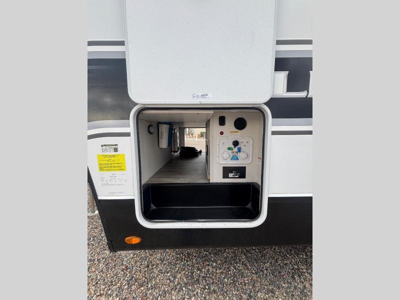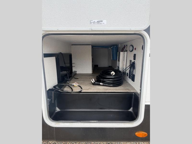 There's a lot to love about this travel trailer, from the full rear bath to the front private bedroom with an Olympic queen-size bed! The tri-fold sofa with cup holders will provide a comfy place to relax, and there is a table with chairs and a bench to dine at, and both of these pieces of furniture are within a large slide out for more floor space. The fully-equipped kitchen comes with a GE microwave and 21 in. range plus a GE 10 cu. ft. 12V refrigerator and walk-in pantry for food storage. And an exterior Jayport with LP Quick Connect and hot/cold water makes it possible to hook up your own grill!