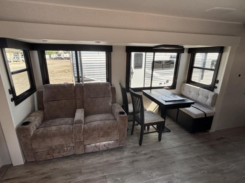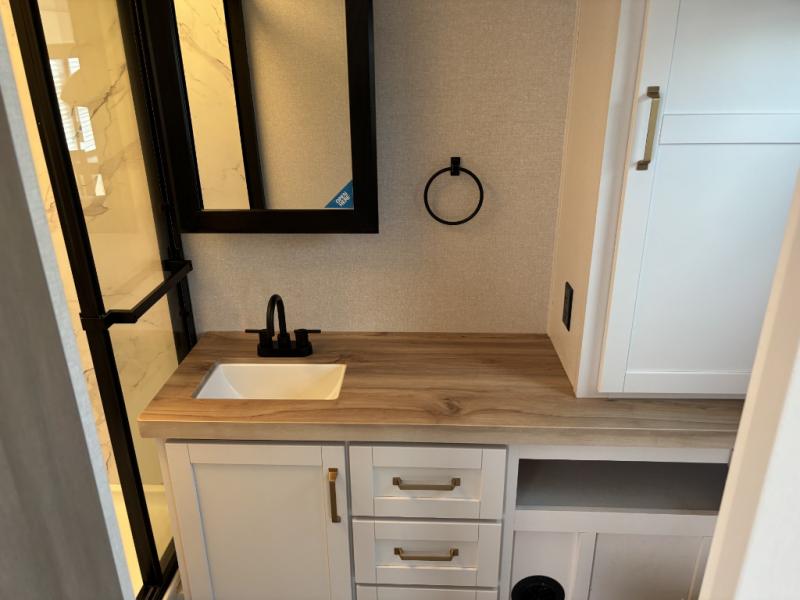 With any Eagle HT fifth wheel or travel trailer by Jayco you will enjoy a smooth drive thanks to the 4 Star Handling Package and MORryde CRE-3000 rubberized suspension. The Customer Value Package includes amenities that are sure to make camping easier than ever, like the 60K on-demand water heater, Keyed-Alike lock system, 15,000 BTU "Whisper Quiet" A/C, and more. Handcrafted door/drawer fronts will make your space feel more like home, along with residential vinyl flooring throughout, GE appliances, and blackout roller shades with reflective side throughout to keep the sun out when you want to sleep in. Each model also includes a NuVo H2O water treatment system with filters included, interior and exterior "Blue Sync" audio connect with MB Quart Sound for your TV and phone, and 100% no floor vents for added comfort and convenience!