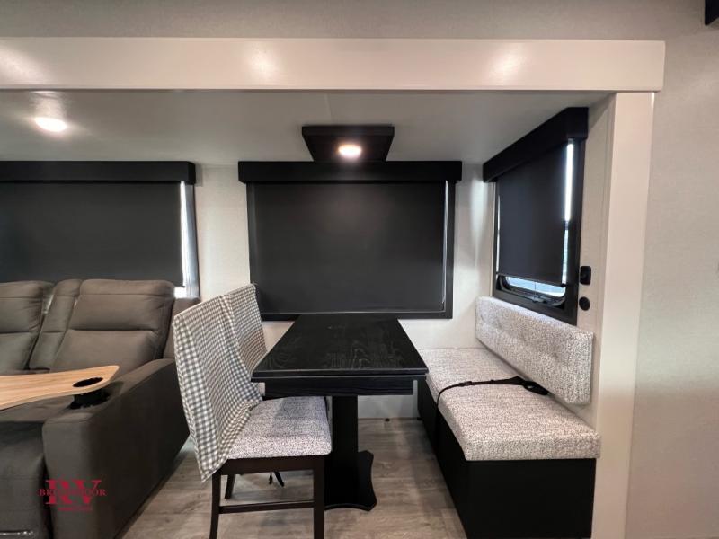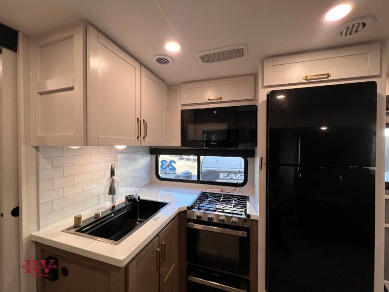 With any Eagle HT fifth wheel or travel trailer by Jayco you will enjoy a smooth drive thanks to the 4 Star Handling Package and MORryde CRE-3000 rubberized suspension. The Customer Value Package includes amenities that are sure to make camping easier than ever, like the 60K on-demand water heater, Keyed-Alike lock system, 15,000 BTU "Whisper Quiet" A/C, and more. Handcrafted door/drawer fronts will make your space feel more like home, along with residential vinyl flooring throughout, GE appliances, and blackout roller shades with reflective side throughout to keep the sun out when you want to sleep in. Each model also includes a NuVo H2O water treatment system with filters included, interior and exterior "Blue Sync" audio connect with MB Quart Sound for your TV and phone, and 100% no floor vents for added comfort and convenience!