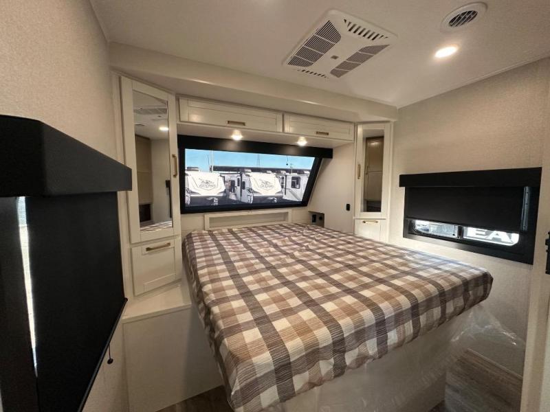 With any Eagle HT fifth wheel or travel trailer by Jayco you will enjoy a smooth drive thanks to the 4 Star Handling Package and MORryde CRE-3000 rubberized suspension. The Customer Value Package includes amenities that are sure to make camping easier than ever, like the 60K on-demand water heater, Keyed-Alike lock system, 15,000 BTU "Whisper Quiet" A/C, and more. Handcrafted door/drawer fronts will make your space feel more like home, along with residential vinyl flooring throughout, GE appliances, and blackout roller shades with reflective side throughout to keep the sun out when you want to sleep in. Each model also includes a NuVo H2O water treatment system with filters included, interior and exterior "Blue Sync" audio connect with MB Quart Sound for your TV and phone, and 100% no floor vents for added comfort and convenience!