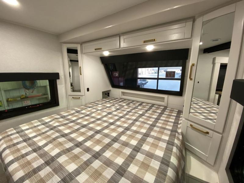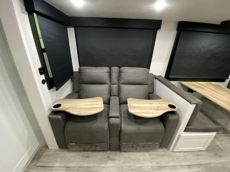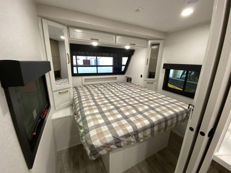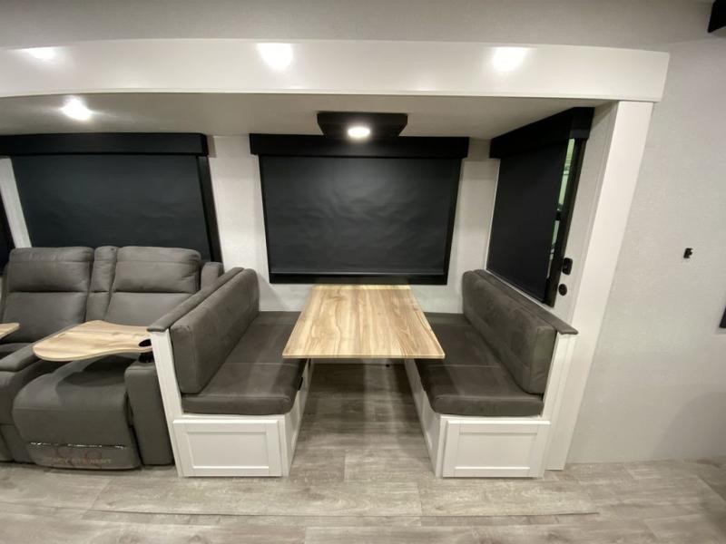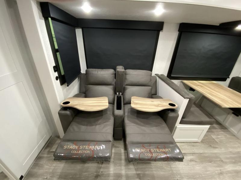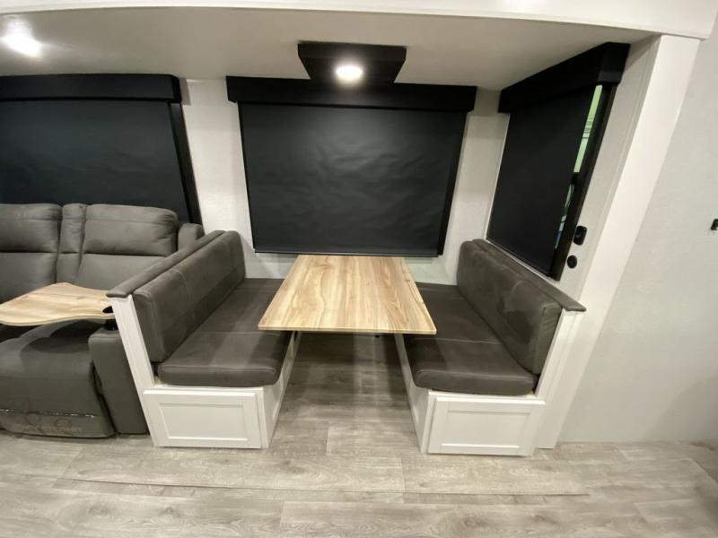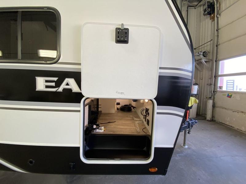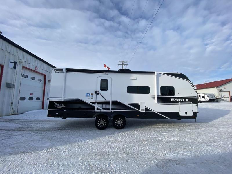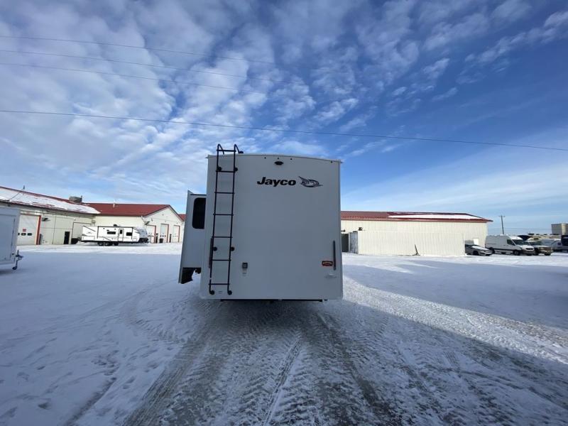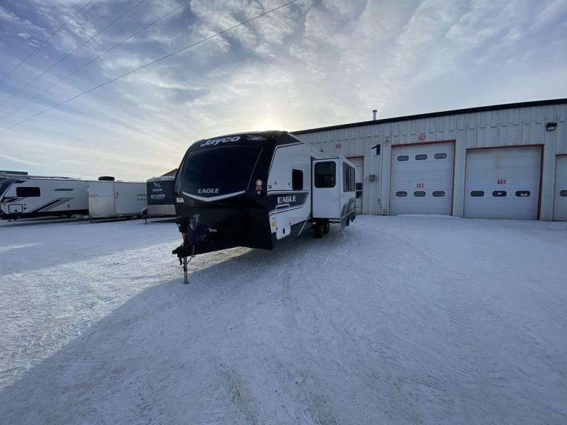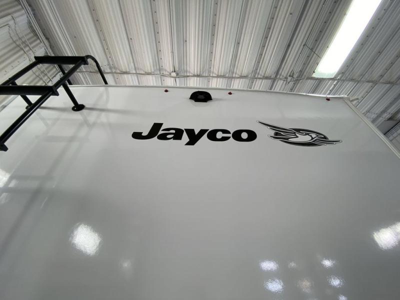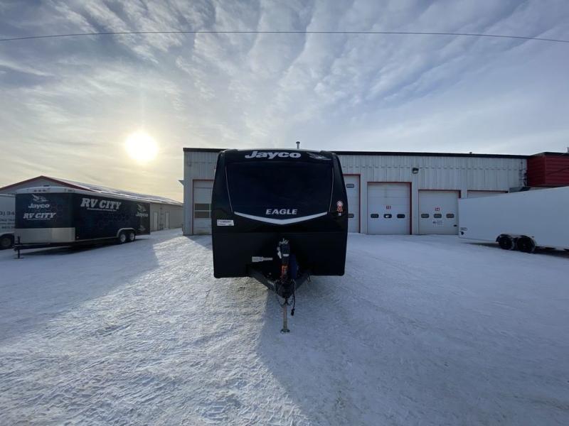 With any Eagle HT fifth wheel or travel trailer by Jayco you will enjoy a smooth drive thanks to the 4 Star Handling Package and MORryde CRE-3000 rubberized suspension. The Customer Value Package includes amenities that are sure to make camping easier than ever, like the 60K on-demand water heater, Keyed-Alike lock system, 15,000 BTU "Whisper Quiet" A/C, and more. Handcrafted door/drawer fronts will make your space feel more like home, along with residential vinyl flooring throughout, GE appliances, and blackout roller shades with reflective side throughout to keep the sun out when you want to sleep in. Each model also includes a NuVo H2O water treatment system with filters included, interior and exterior "Blue Sync" audio connect with MB Quart Sound for your TV and phone, and 100% no floor vents for added comfort and convenience!
