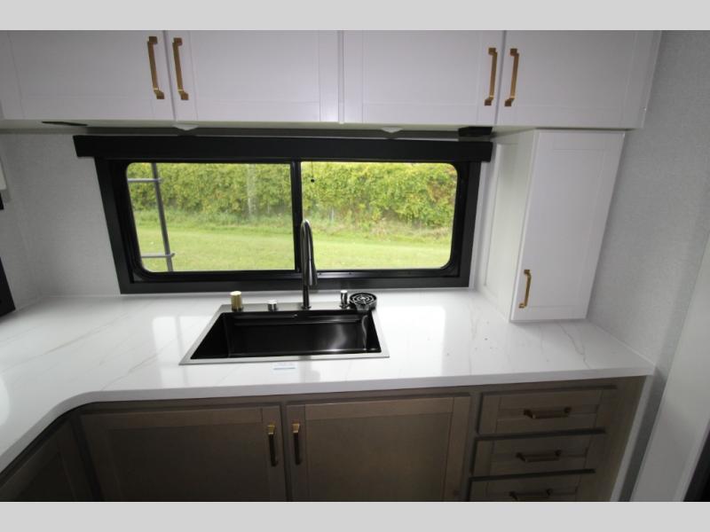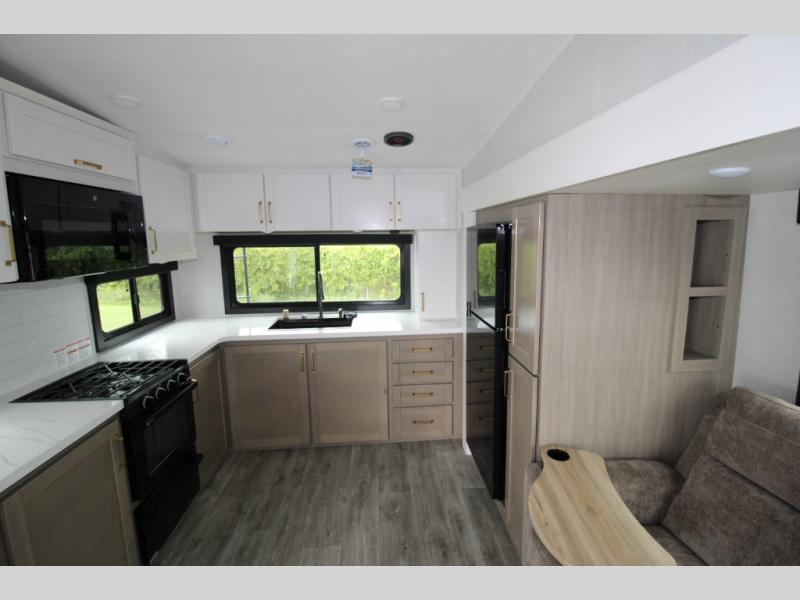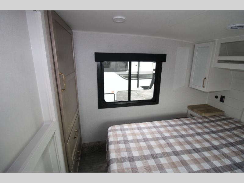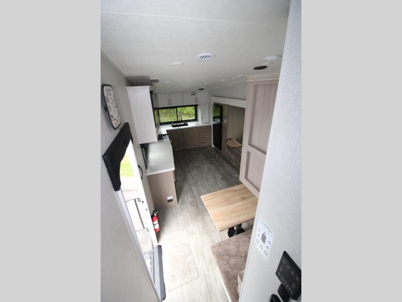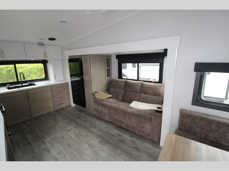 With any Eagle HT fifth wheel or travel trailer by Jayco you will enjoy a smooth drive thanks to the 4 Star Handling Package and MORryde CRE-3000 rubberized suspension. The Customer Value Package includes amenities that are sure to make camping easier than ever, like the 60K on-demand water heater, Keyed-Alike lock system, 15,000 BTU "Whisper Quiet" A/C, and more. Handcrafted door/drawer fronts will make your space feel more like home, along with residential vinyl flooring throughout, GE appliances, and blackout roller shades with reflective side throughout to keep the sun out when you want to sleep in. Each model also includes a NuVo H2O water treatment system with filters included, interior and exterior "Blue Sync" audio connect with MB Quart Sound for your TV and phone, and 100% no floor vents for added comfort and convenience!