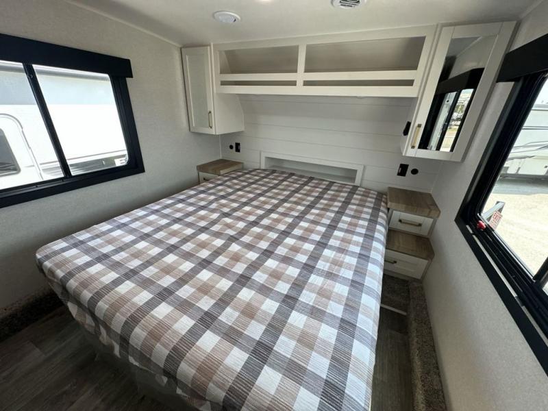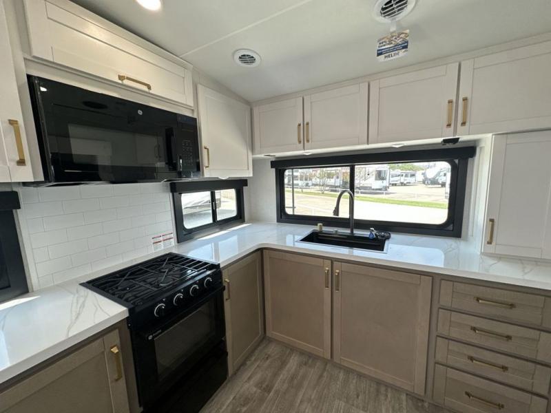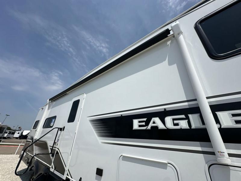 With any Eagle HT fifth wheel or travel trailer by Jayco you will enjoy a smooth drive thanks to the 4 Star Handling Package and MORryde CRE-3000 rubberized suspension. The Customer Value Package includes amenities that are sure to make camping easier than ever, like the 60K on-demand water heater, Keyed-Alike lock system, 15,000 BTU "Whisper Quiet" A/C, and more. Handcrafted door/drawer fronts will make your space feel more like home, along with residential vinyl flooring throughout, GE appliances, and blackout roller shades with reflective side throughout to keep the sun out when you want to sleep in. Each model also includes a NuVo H2O water treatment system with filters included, interior and exterior "Blue Sync" audio connect with MB Quart Sound for your TV and phone, and 100% no floor vents for added comfort and convenience!