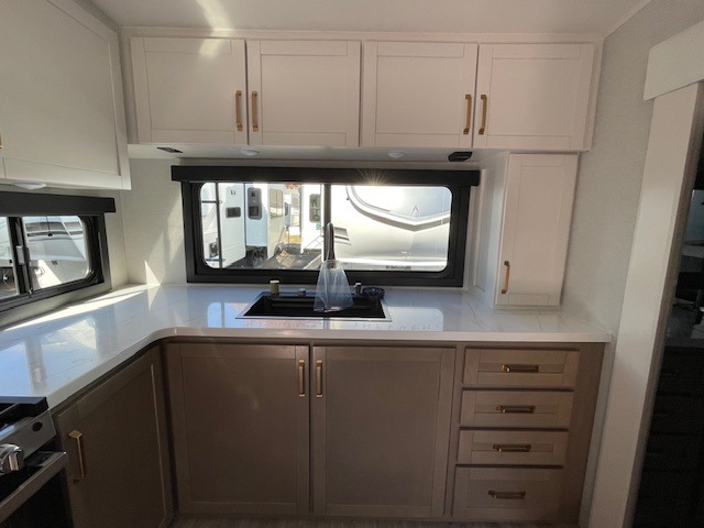 With any Eagle HT fifth wheel or travel trailer by Jayco you will enjoy a smooth drive thanks to the 4 Star Handling Package and MORryde CRE-3000 rubberized suspension. The Customer Value Package includes amenities that are sure to make camping easier than ever, like the 60K on-demand water heater, Keyed-Alike lock system, 15,000 BTU "Whisper Quiet" A/C, and more. Handcrafted door/drawer fronts will make your space feel more like home, along with residential vinyl flooring throughout, GE appliances, and blackout roller shades with reflective side throughout to keep the sun out when you want to sleep in. Each model also includes a NuVo H2O water treatment system with filters included, interior and exterior "Blue Sync" audio connect with MB Quart Sound for your TV and phone, and 100% no floor vents for added comfort and convenience!