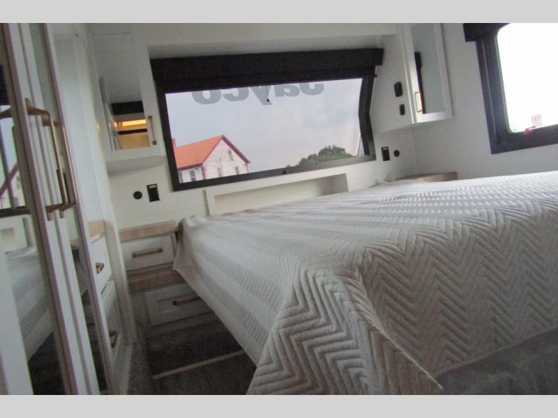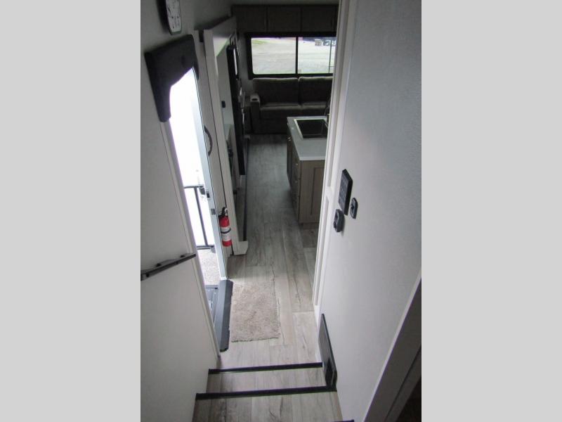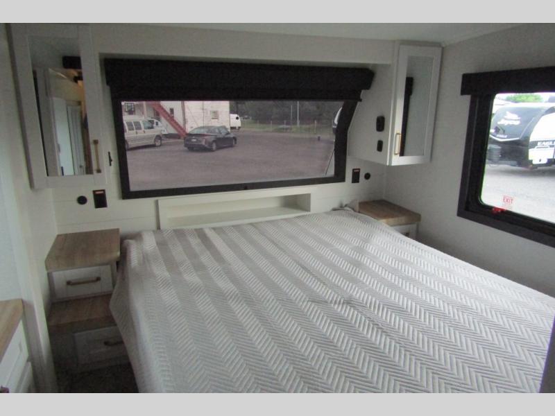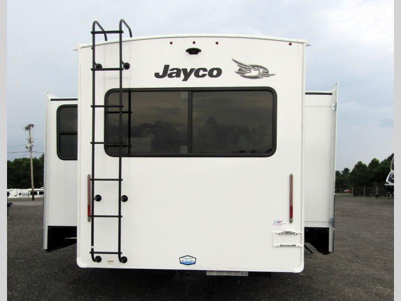 With any Eagle HT fifth wheel or travel trailer by Jayco you will enjoy a smooth drive thanks to the 4 Star Handling Package, Goodyear Endurance tires, and MORryde CRE-3000 rubberized suspension. The Customer Value Package includes amenities that are sure to make camping easier than ever, like the 60K on-demand water heater, Keyed-Alike lock system, 15,000 BTU "Whisper Quiet" A/C, and more. Handcrafted and glazed door/drawer fronts will make your space feel more like home, along with residential vinyl flooring throughout, GE appliances, and blackout roller shades with reflective side throughout to keep the sun out when you want to sleep in. Each model also includes a NuVo H2O water treatment system with filters included, interior and exterior "Blue Sync" audio connect with MB Quart Sound for your TV and phone, and 100% no floor vents for added comfort and convenience!